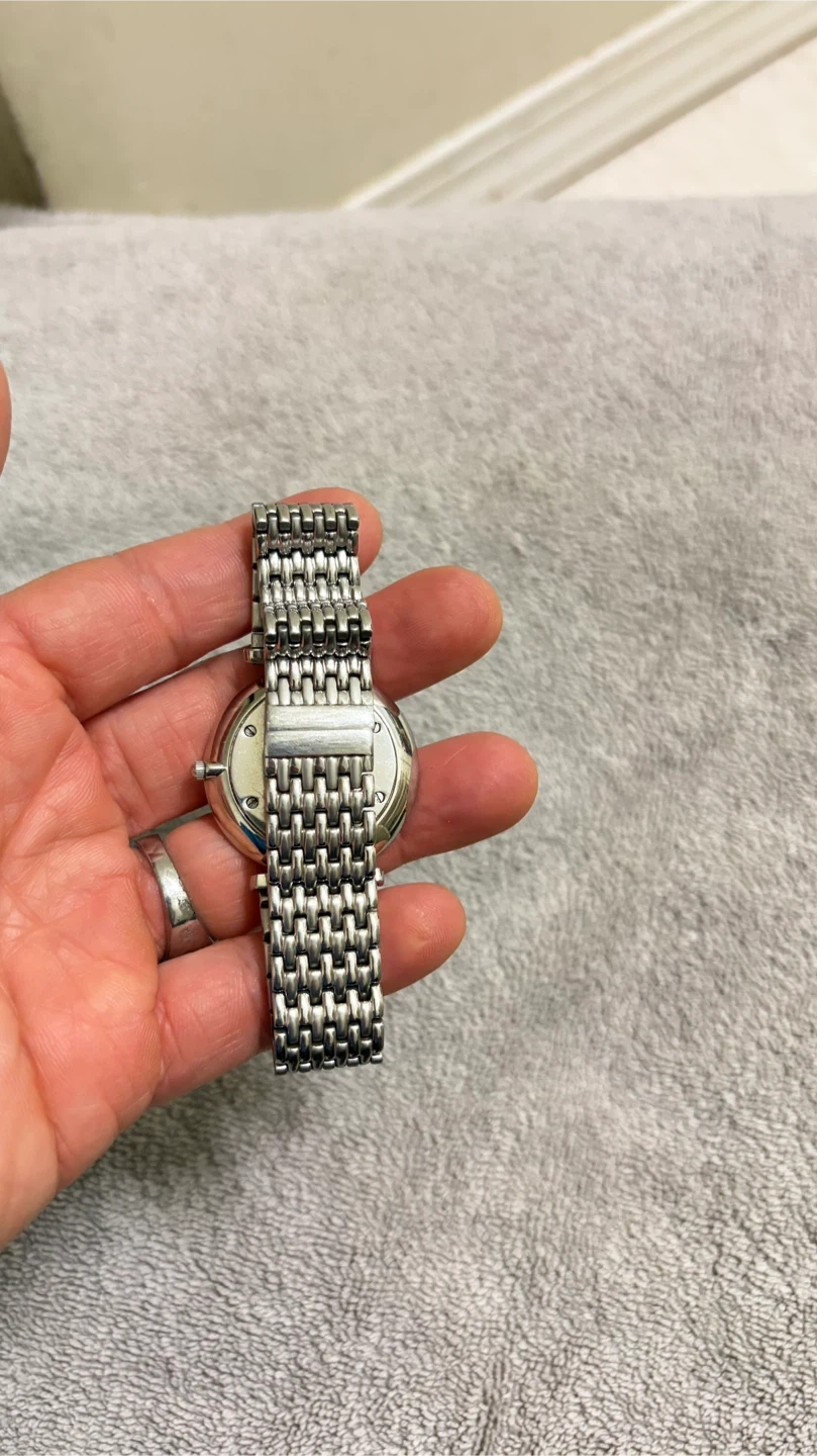 Sale as is a replica Longines ladies' watch with a silver band and face. It's in great condition and ready to wear! I’m not sure it’s still running or just needs a battery. Open for offers
