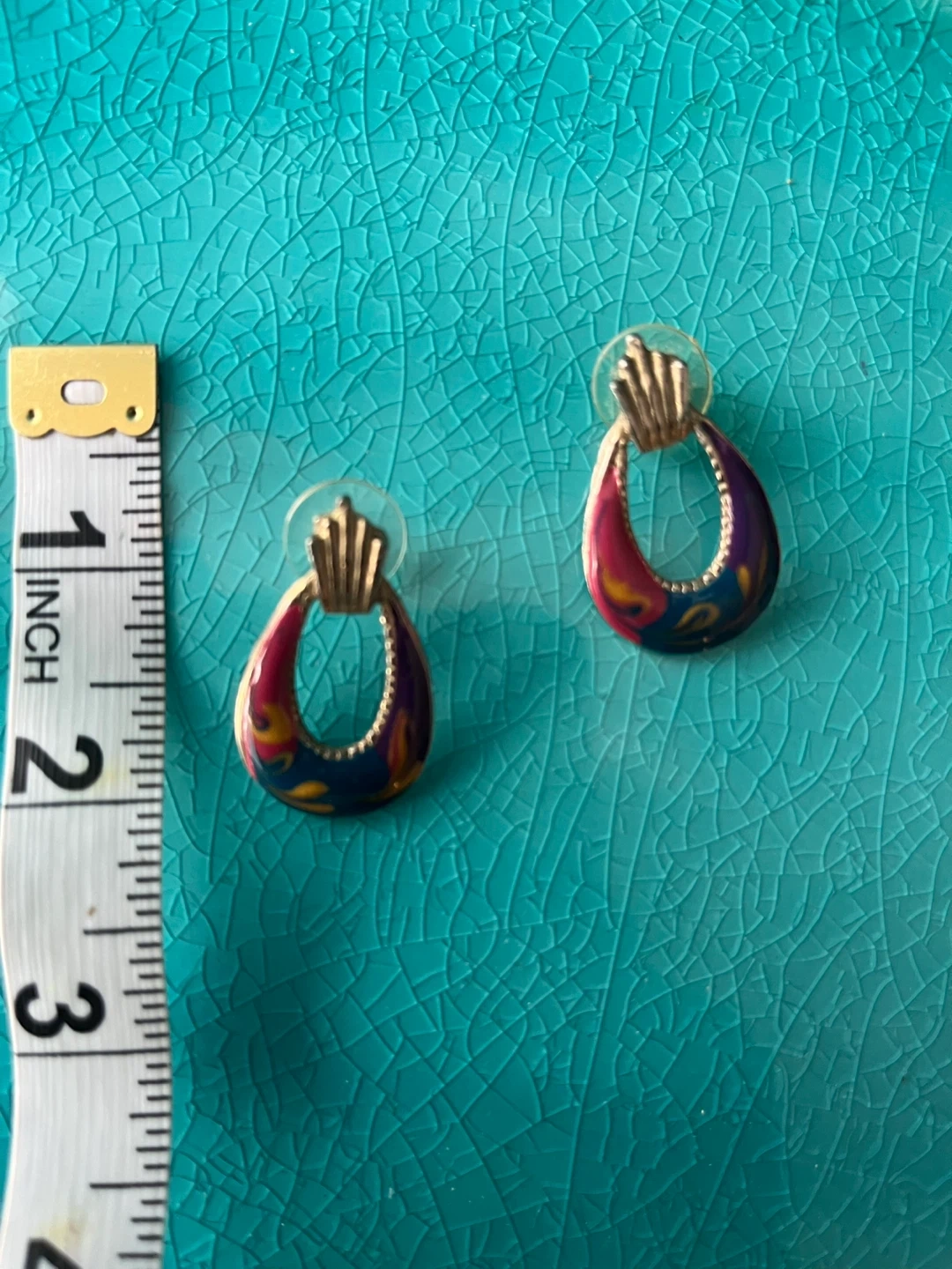 These are a pair of vintage drop earrings with a colourful design. They are in great condition!