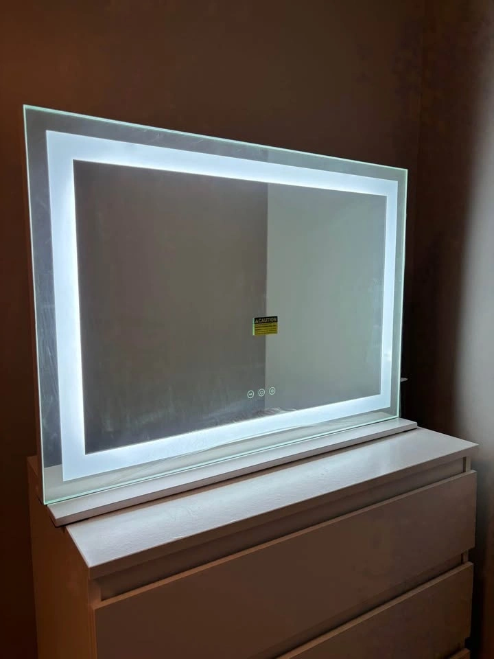 The screen protector is still on. Brightness Adjustable and 3 Color Lighting Modes. This vanity mirror has a perfect size 28"L x 20"W, Large enough to provide a perfect upper body view. Simple style lights layout provide a clean and bright reflection allow you to get the most natural application of makeup, even in the evening.
