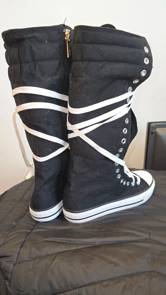 DAILY knee-high thick canvas runners in black/white With zipper entry They're brand new haven't even been laced up yet! size 6us 4uk Perfect for adding a bit of edge to your outfit!