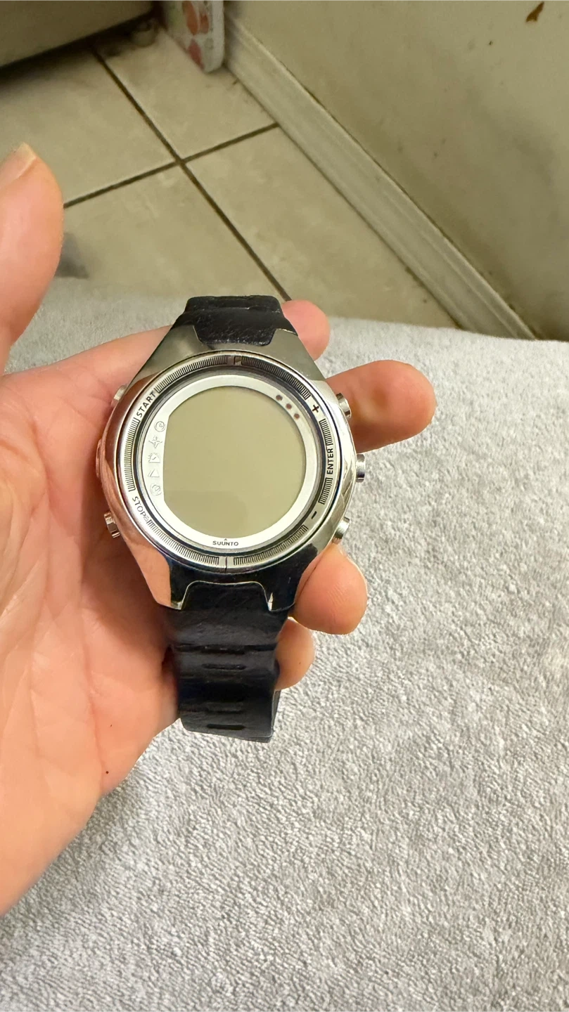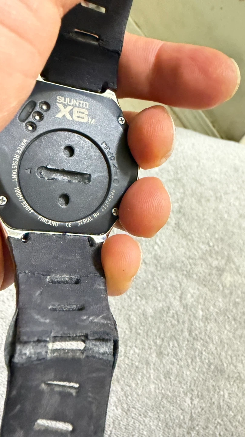 Selling a Suunto X6M watch. It shows signs of wear on the band, but the watch face itself is in good condition. It's a reliable and functional watch for outdoor activities. Needs a new battery