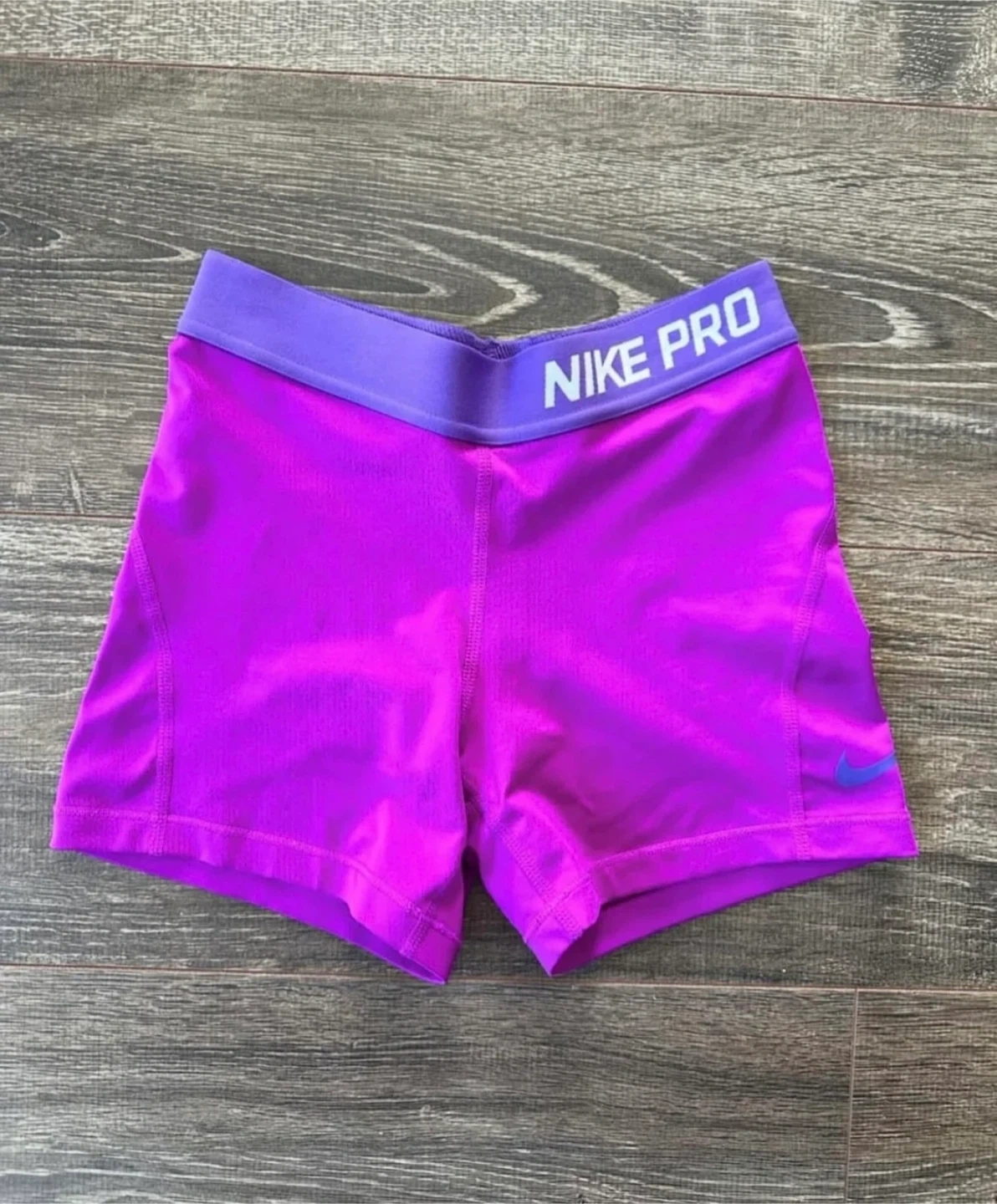 Selling a pair of Nike Pro shorts in a vibrant purple colour. These shorts are perfect for workouts or everyday wear. They feature the Nike Pro waistband for a secure and comfortable fit. Great condition!