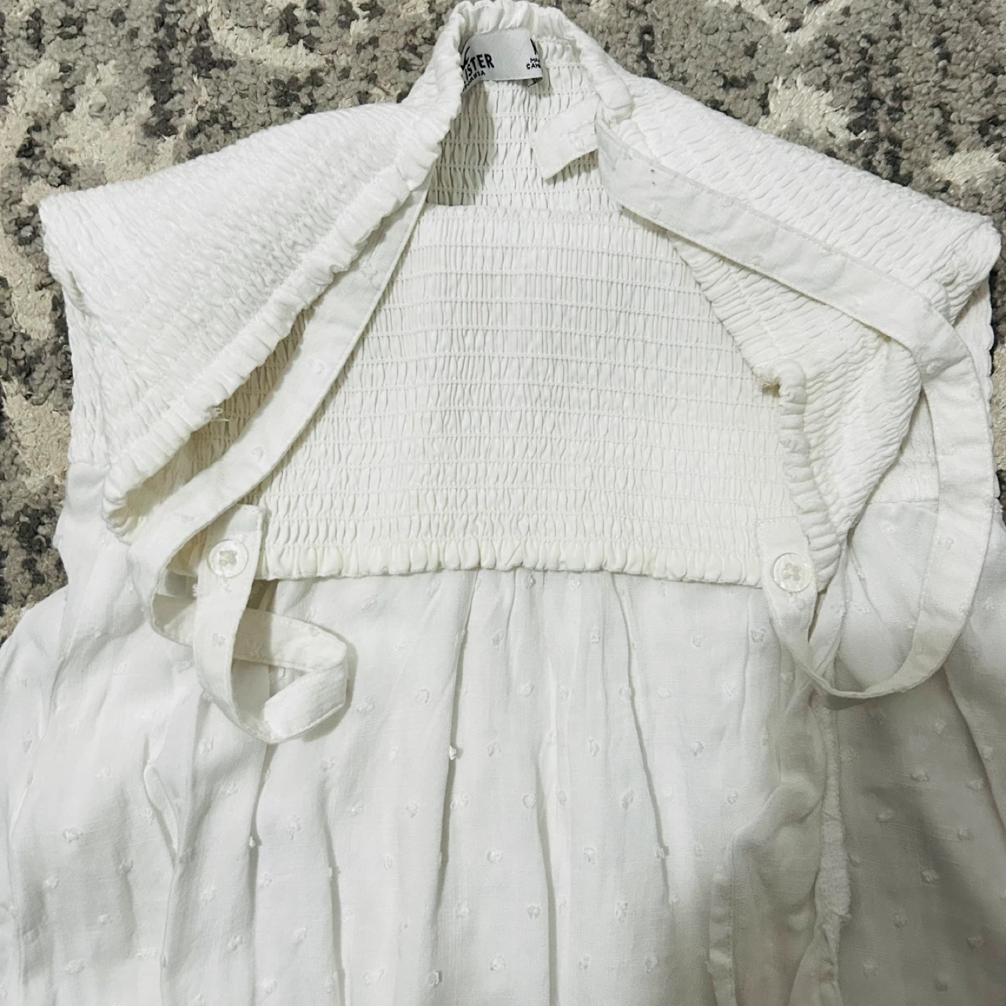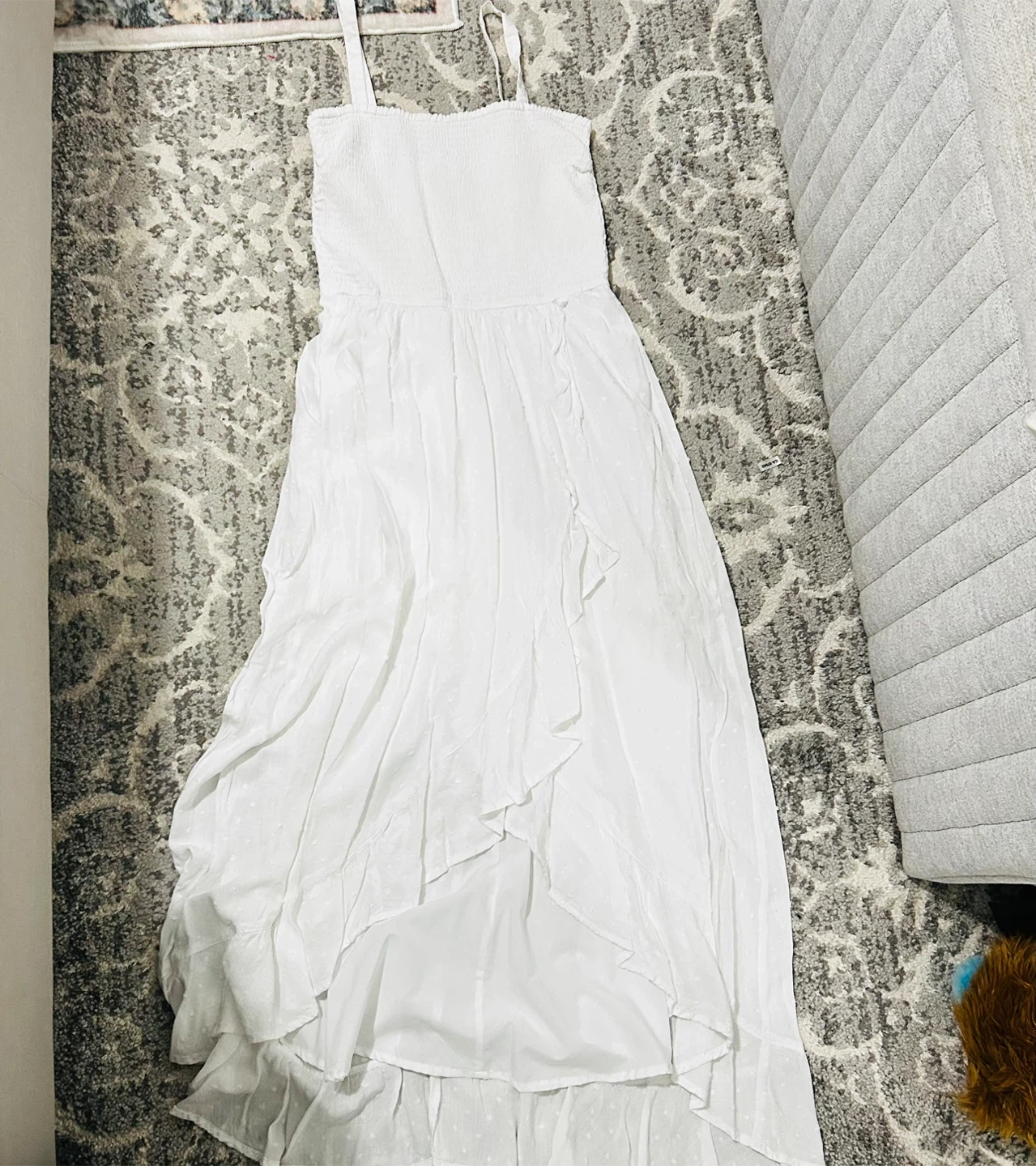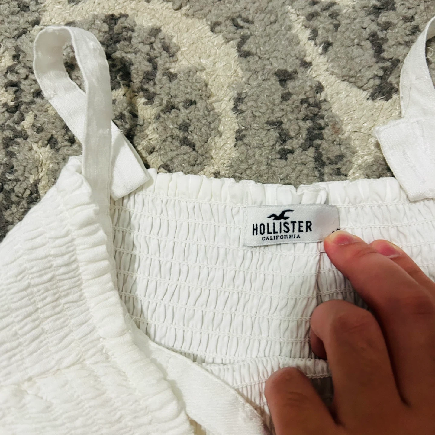 Selling a cute Hollister dress in white! It's in great condition and perfect for summer. The dress has a flowy skirt and a smocked bodice for a comfortable fit