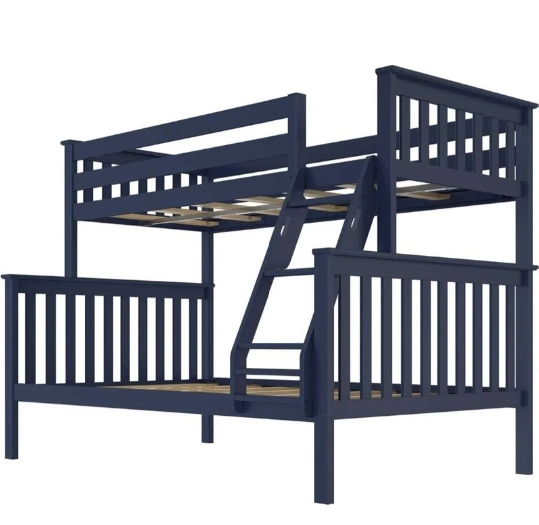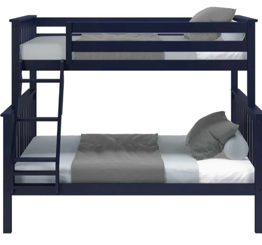 Here's a wooden bunk bed frame in a nice blue colour! It measures 65" tall, 81.5" long, and 57 ¾" wide. The underbed is 36 ¼".
