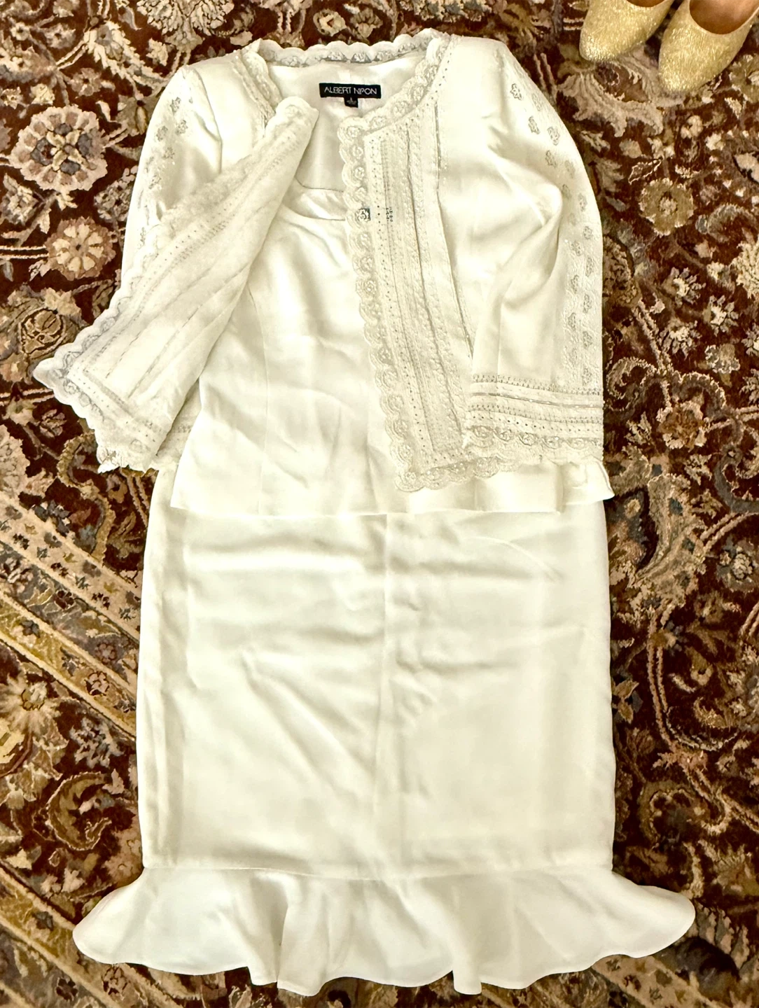 Albert Nipon White Dress & Jacket Set - Size 6