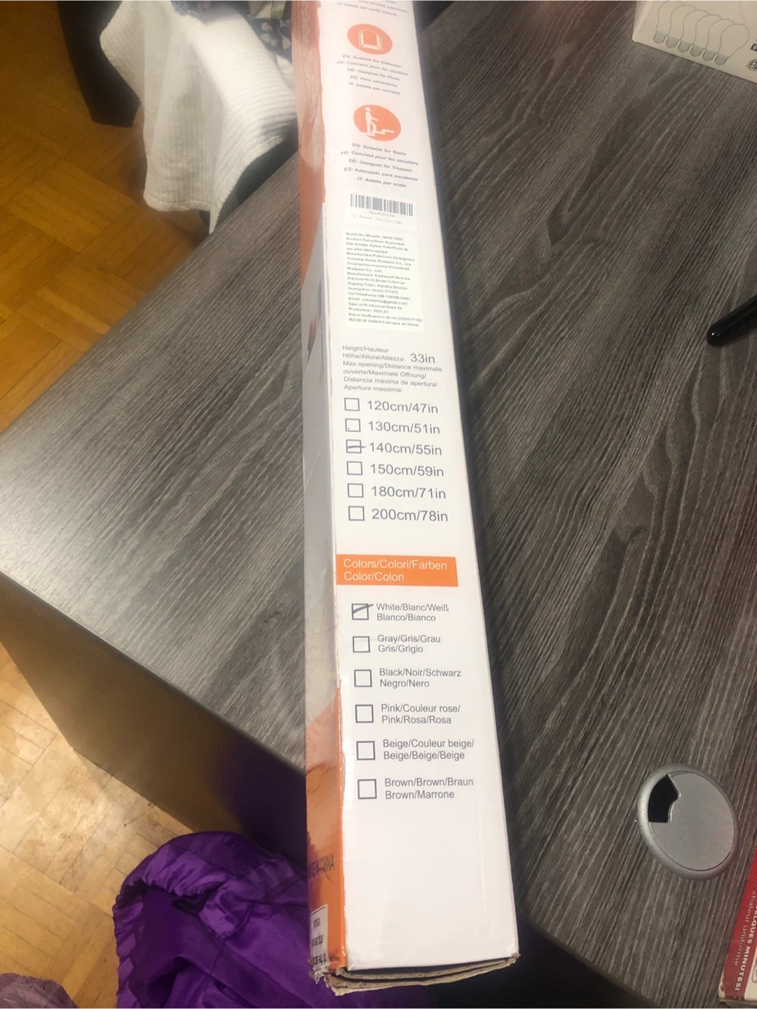 Selling a retractable safety gate in white! It's brand new and still in its original packaging.