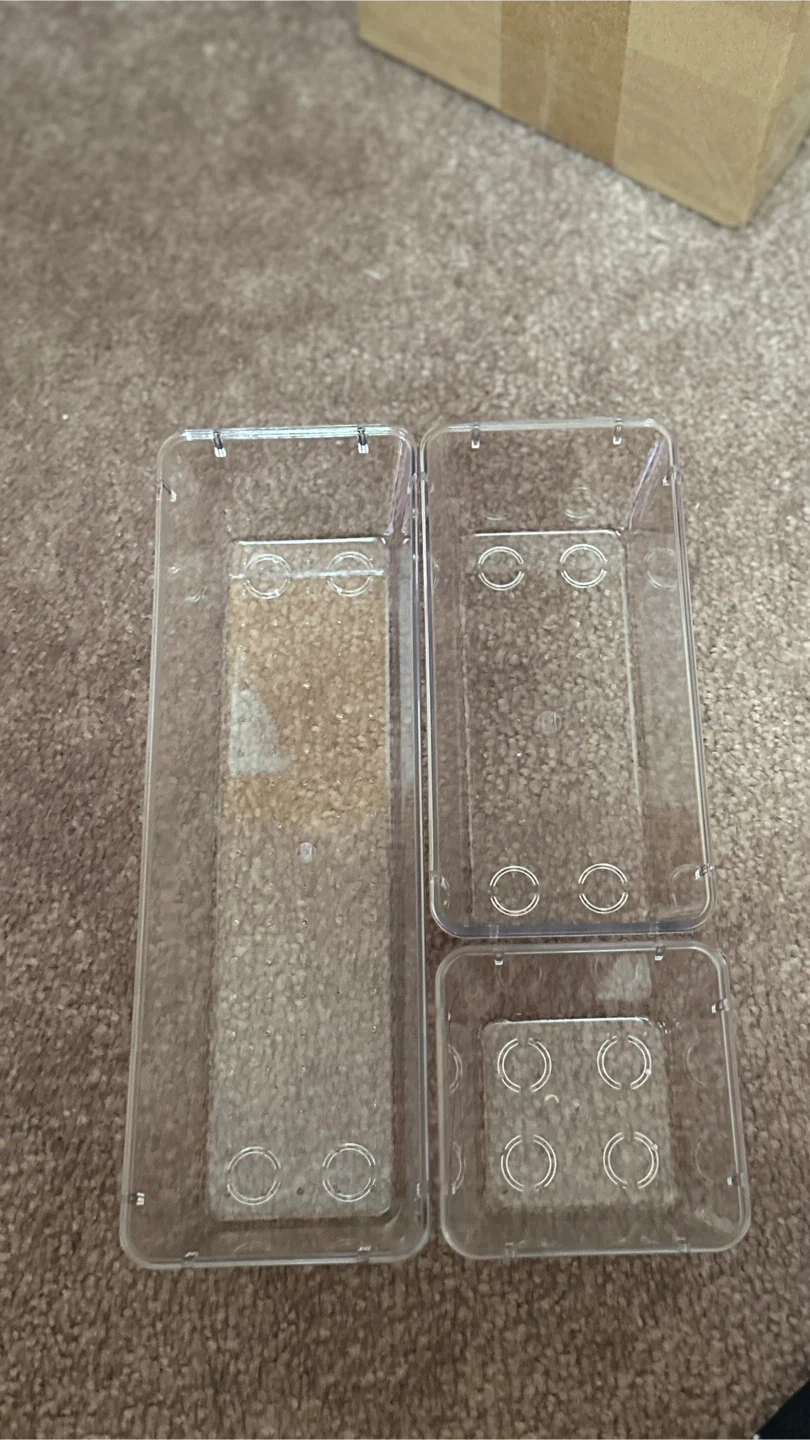 Brand-new clear acrylic organizers perfect for bathroom, vanity, desk or drawer storage. These containers help you keep every space tidy!