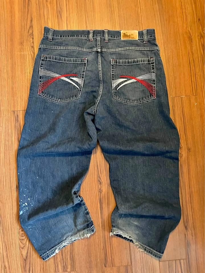 They have a sick embroidery on the back pockets and have some cool stains on the bottom of the leg that gives it sick character