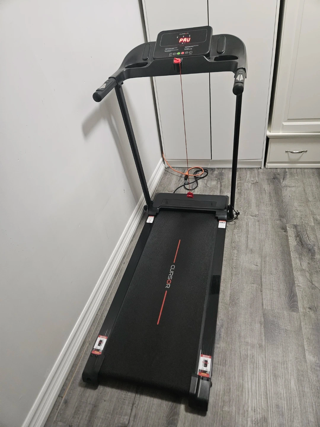 Selling a Cursor treadmill in great condition! Perfect for getting your steps in at home. It's black with red accents, and the display is easy to read. Ready for a new owner!