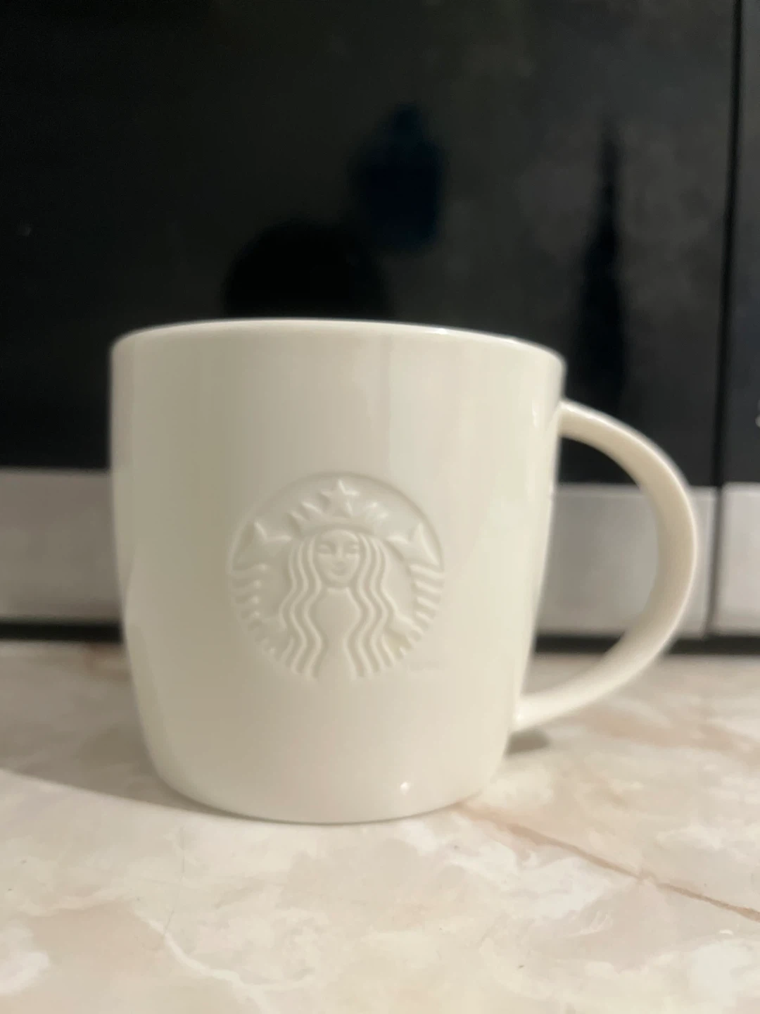Selling a classic Starbucks white ceramic mug! It's in great shape and perfect for your morning coffee or tea. Features the iconic Starbucks logo on the front.