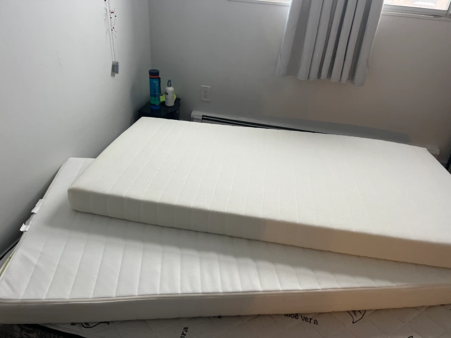 Selling 2 white mattress. It's in good condition and ready for a new home! Perfect for a guest room or anyone needing a comfortable place to sleep. Single is also available if u want
