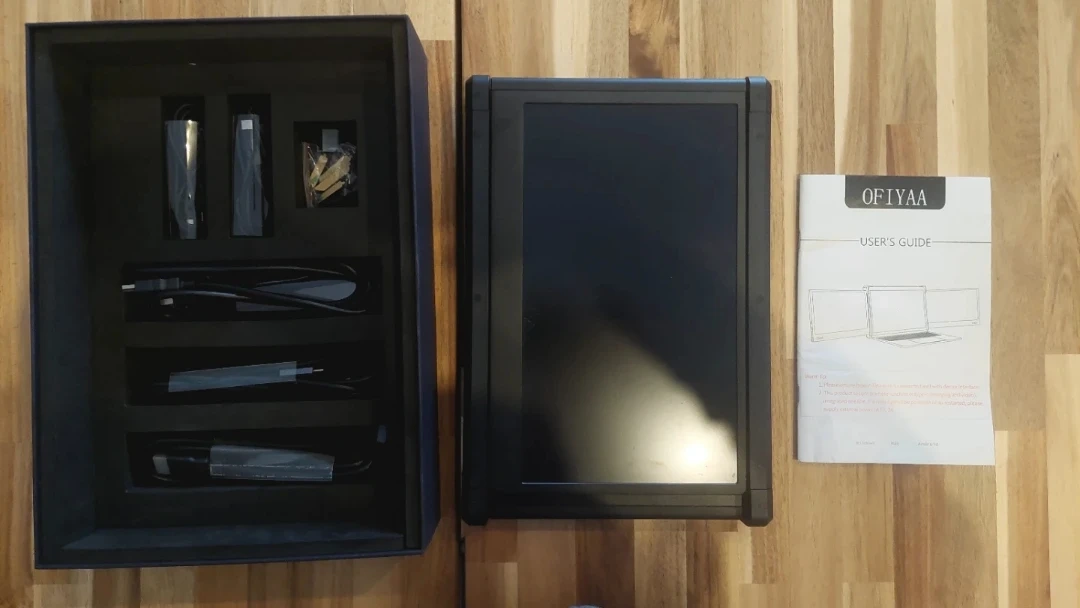 Selling an OFIYAA portable monitor for your laptop! It comes with its original box and user guide. It's great for expanding your workspace when you're on the go. It's in great condition and ready to use!