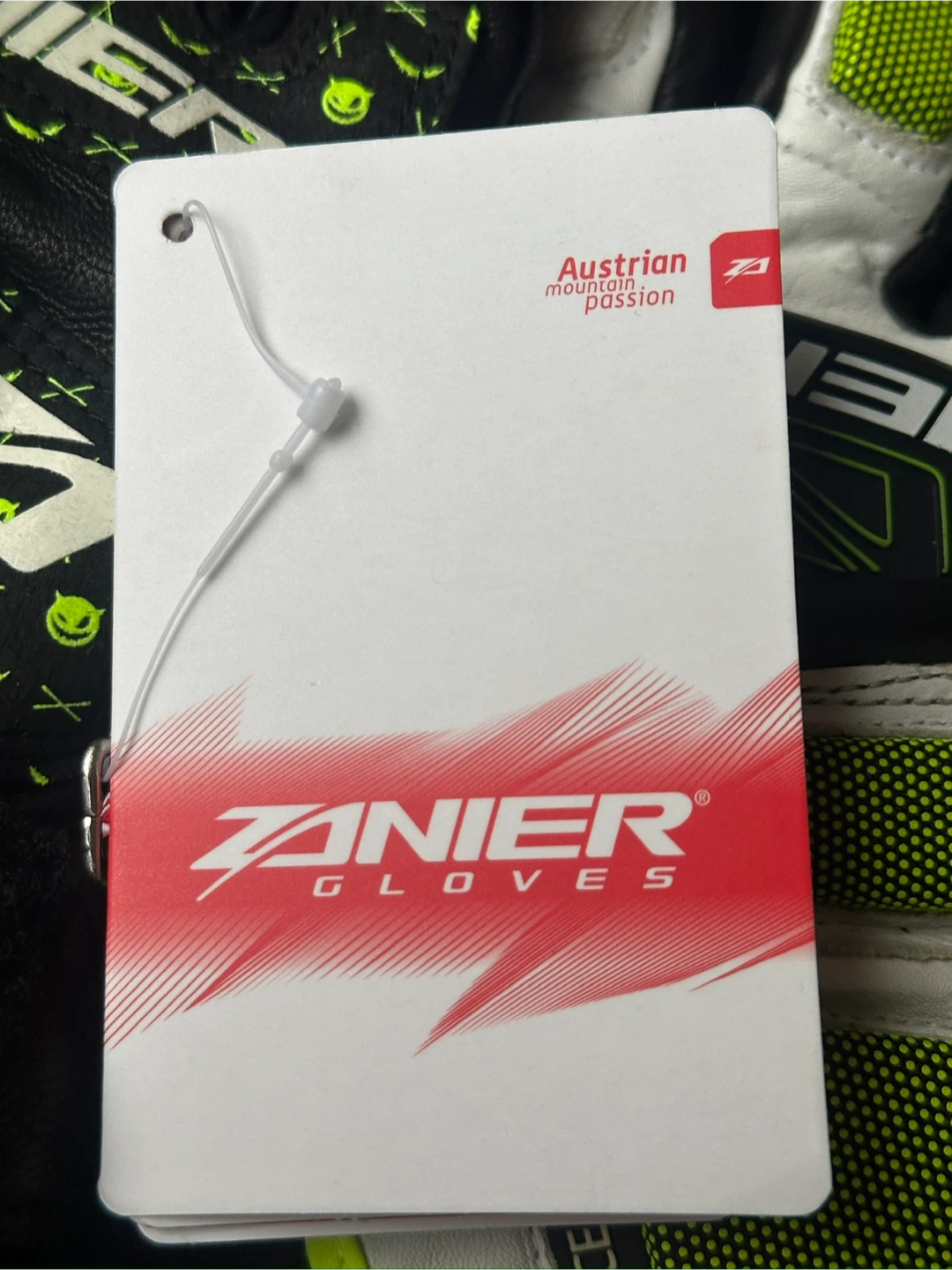 Selling a pair of Zanier Gate Killer Race Pro gloves in size 9. These gloves are perfect for skiing or snowboarding and are in great condition. They feature a black and white design with neon green accents. The gloves also have a "Gate Killer" logo on the wrist. Great for hitting the slopes!