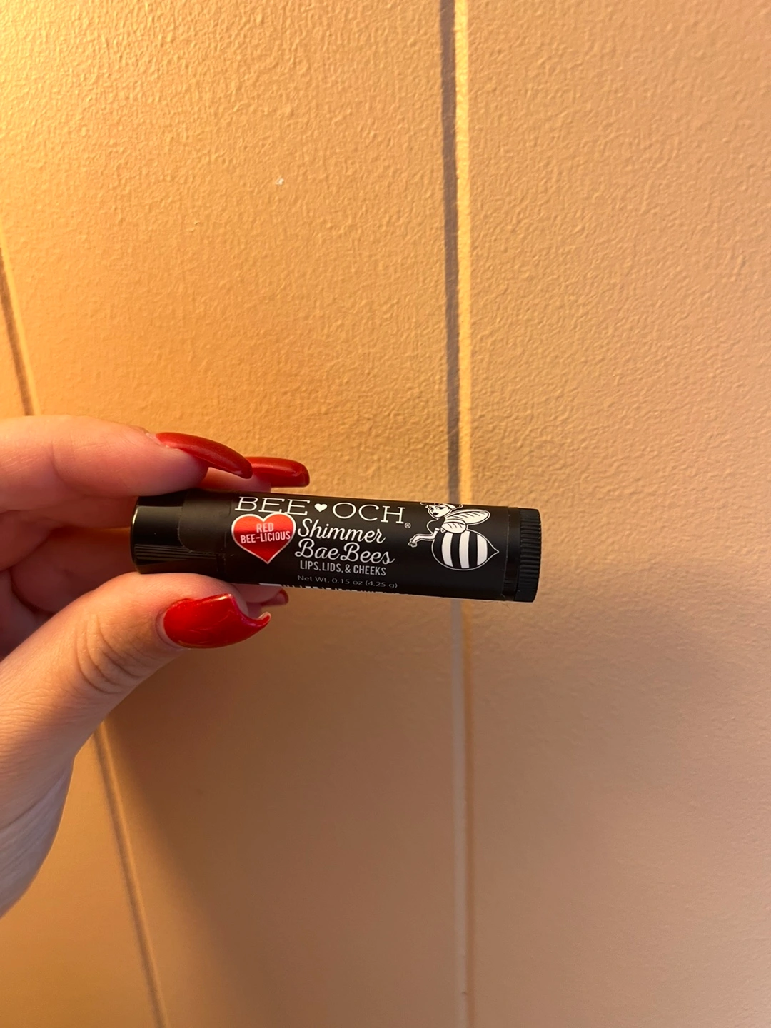 Selling a Beeoch Shimmer Bae Bees balm for lips, lids, and cheeks. It's in the Red Bee-licious shade. Perfect for adding a touch of shimmer to your look!
