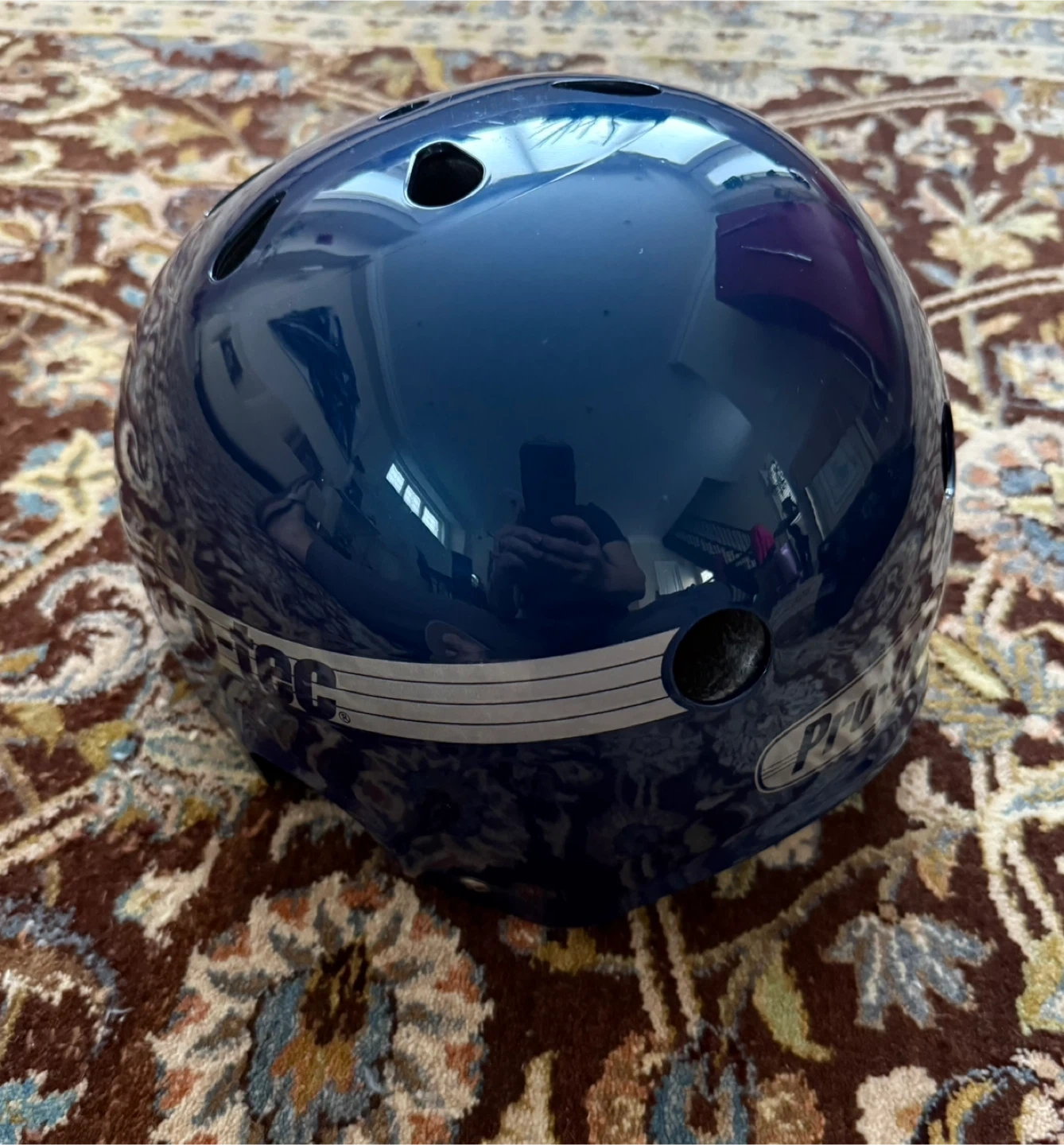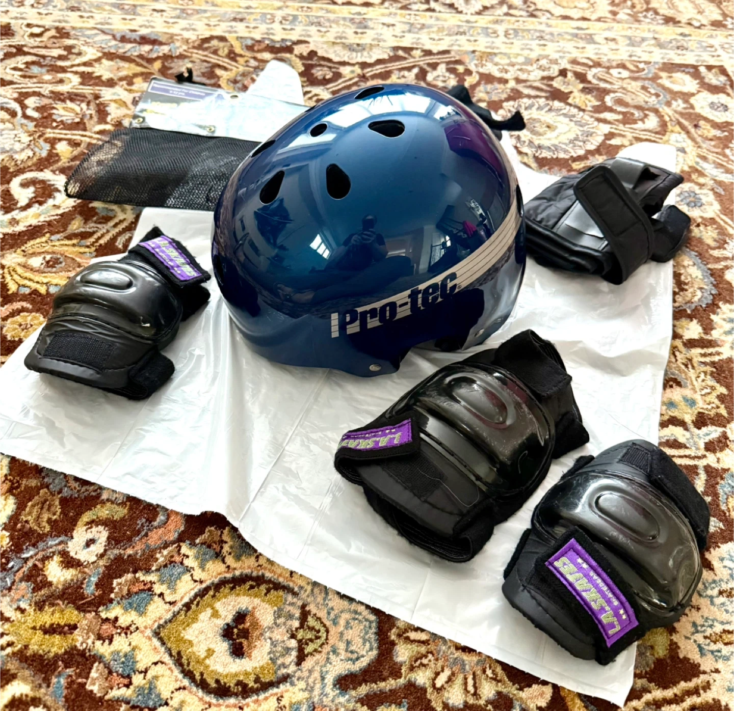 Selling a Pro-tec helmet and pads set. Glossy blue helmet with Pro-tec logos.