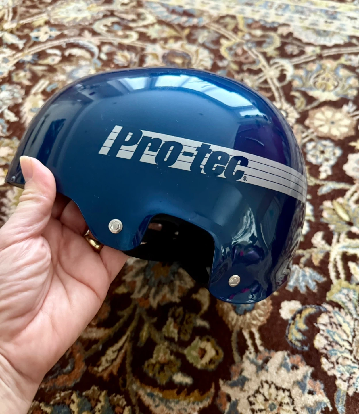 Selling a Pro-tec helmet and pads set. Glossy blue helmet with Pro-tec logos.