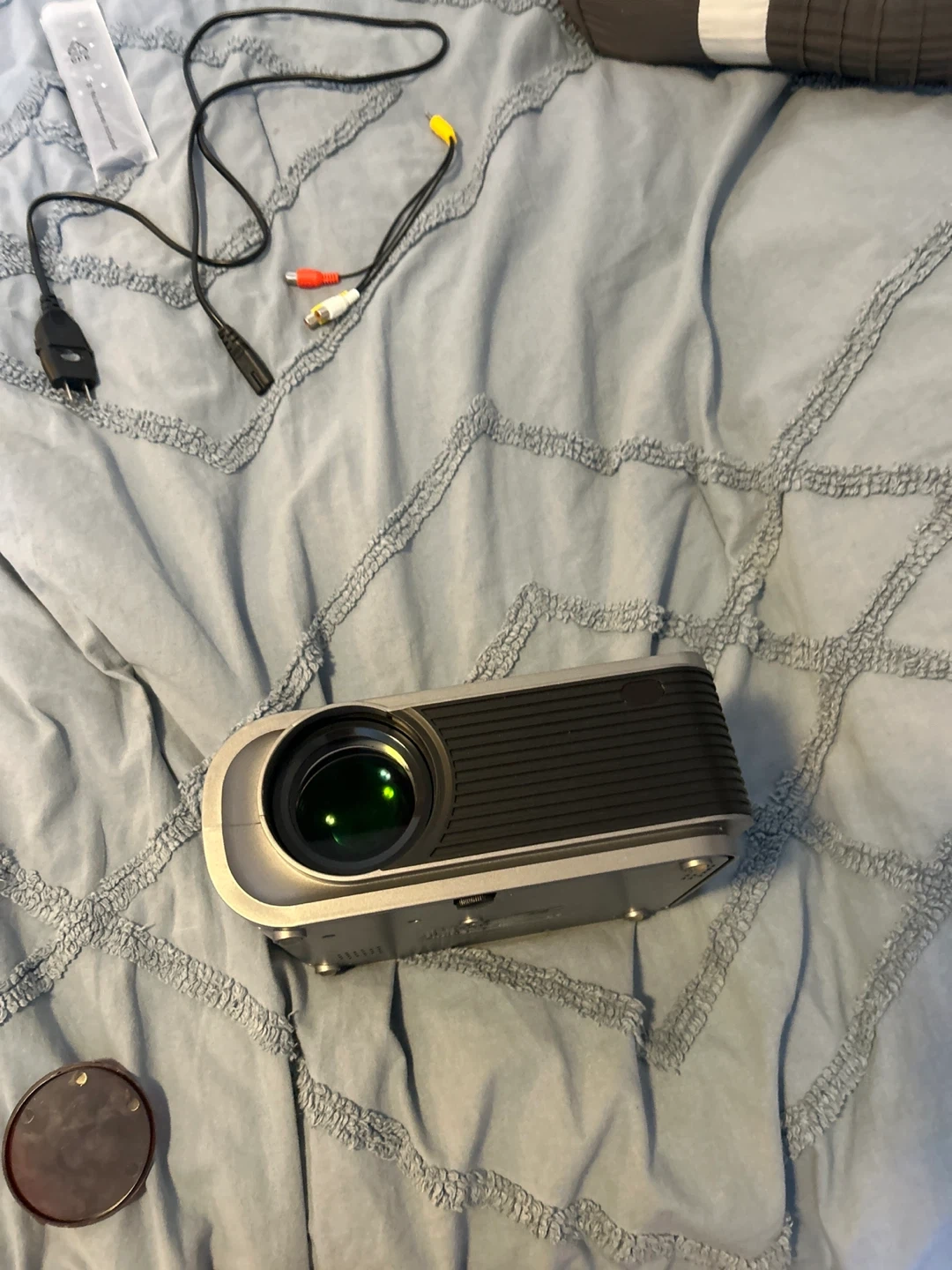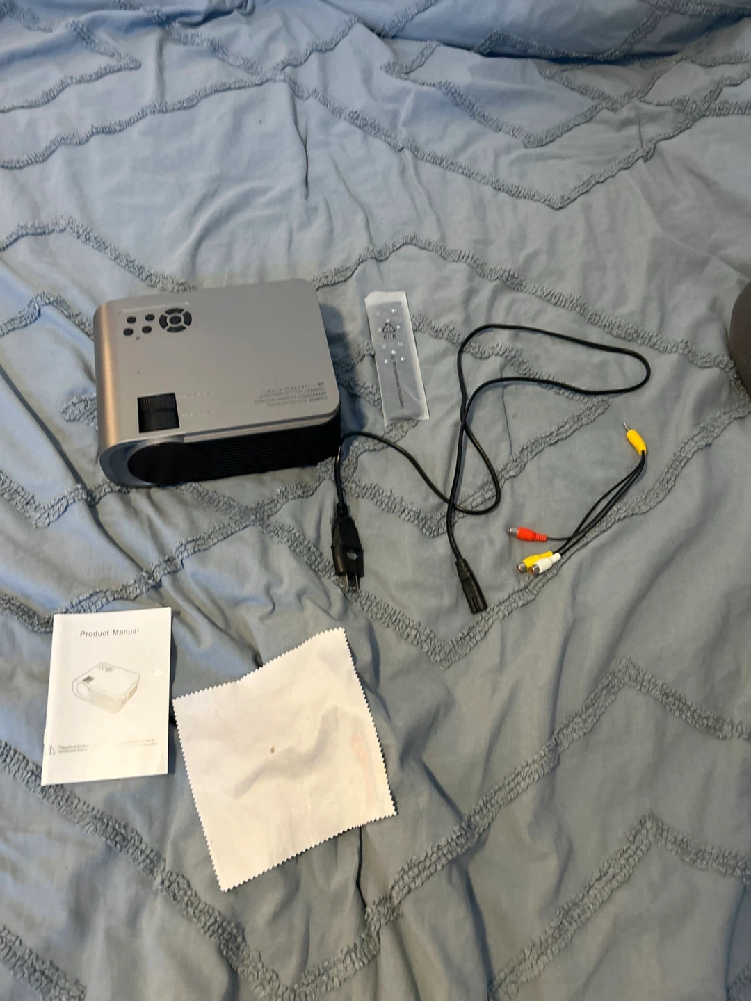 Selling a high-definition projector designed by RayTV. It comes with the box, product manual, remote, and all the necessary cables. Great for movie nights or presentations!