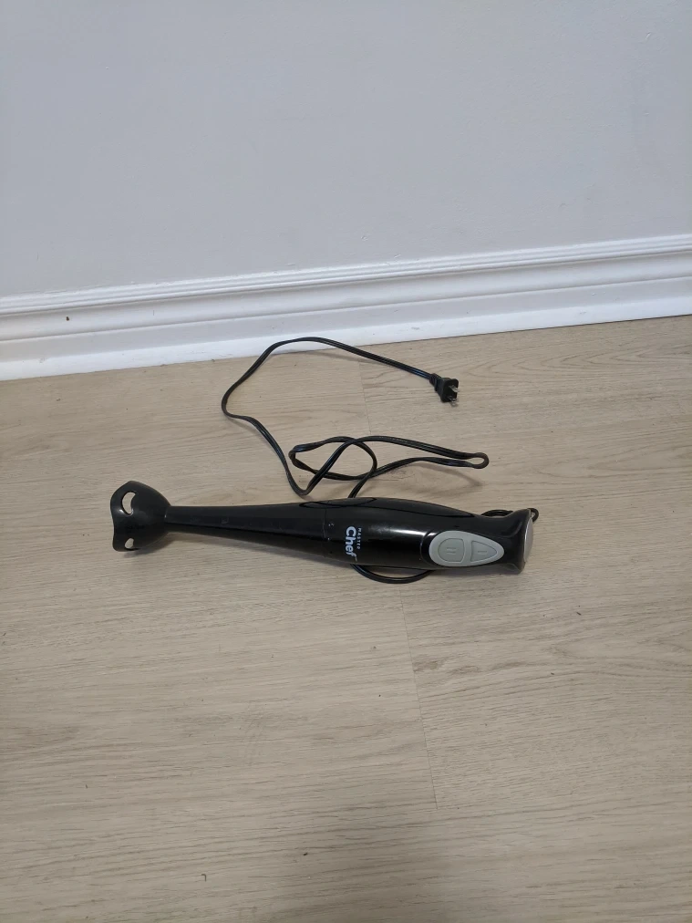 Selling a Master Chef hand blender in great condition! It comes with the blending attachment and power cord. Perfect for making smoothies or soups.
