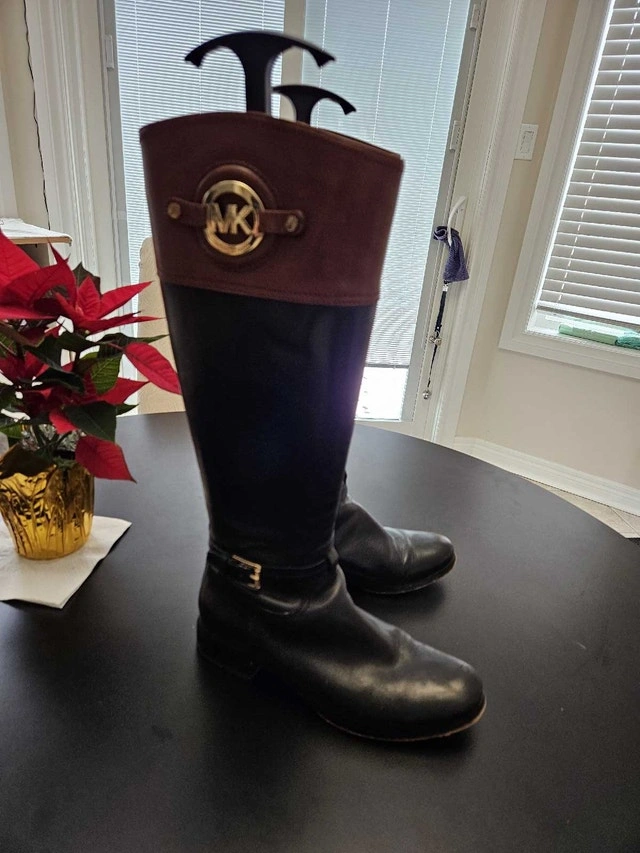 Selling Michael Kors Women’s Two Toned Riding Boots Leather Black/Brown W: 8M for $80.00 or best offer In great condition. Well maintained.