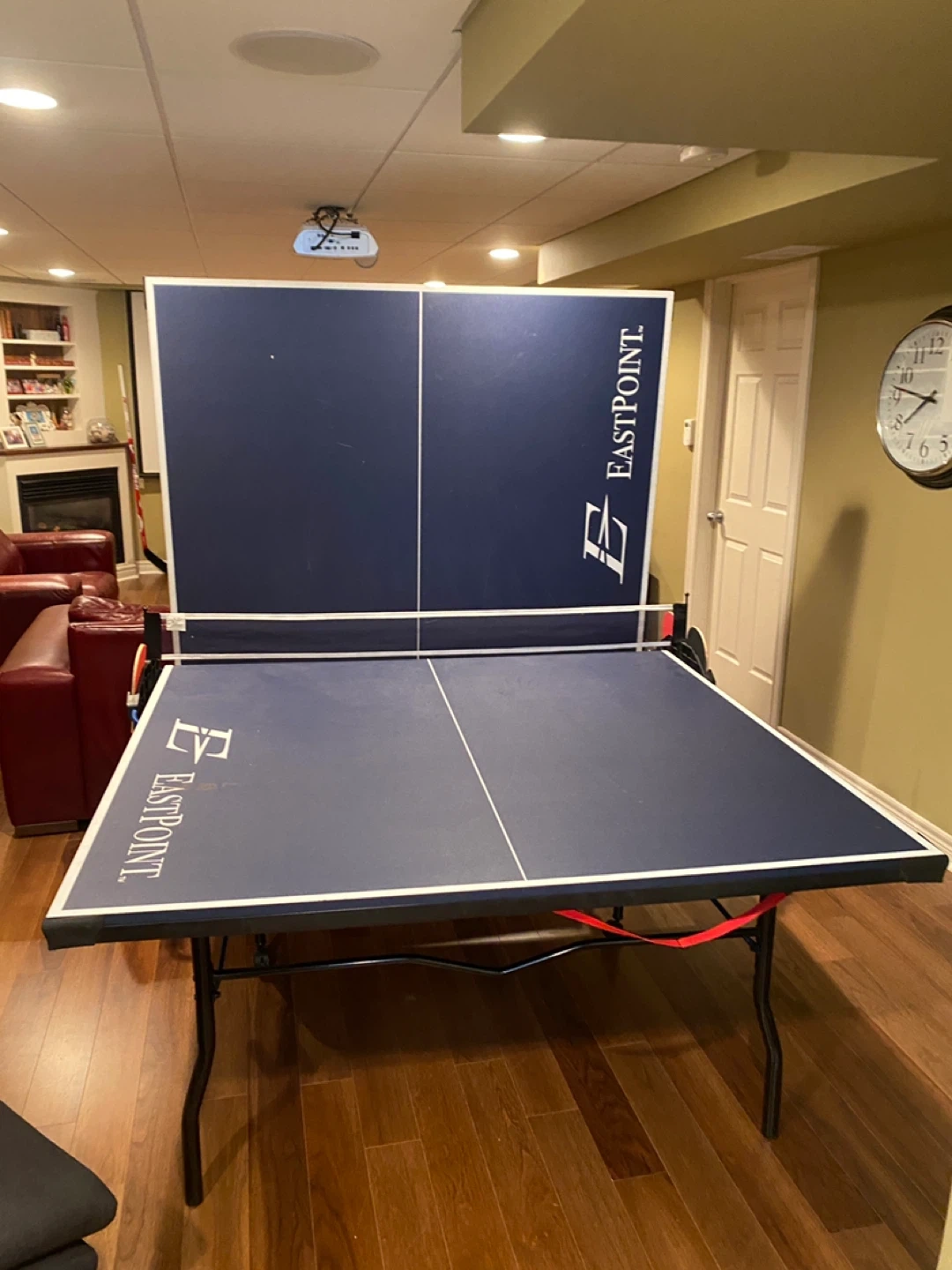 Selling an EastPoint foldable table tennis table. It's in great condition. It folds up easily for storage when you're not using it. Comes with paddles and balls so you're ready to play right away
