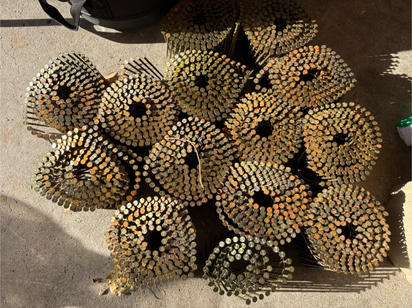 Also comes with 14 coils of 3 1/4” Spiral nails and a almost full box framing 2 1/4” Spiral coil nails 4200 count