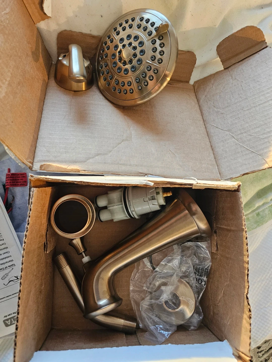 Selling a Delta Faucet Linden 14 Series Single-Function Tub and Shower Trim Kit with 5-Spray Touch-Clean Shower Head in Champagne Bronze. Model number is T14494-CZ. Includes all the pieces in the box as pictured!