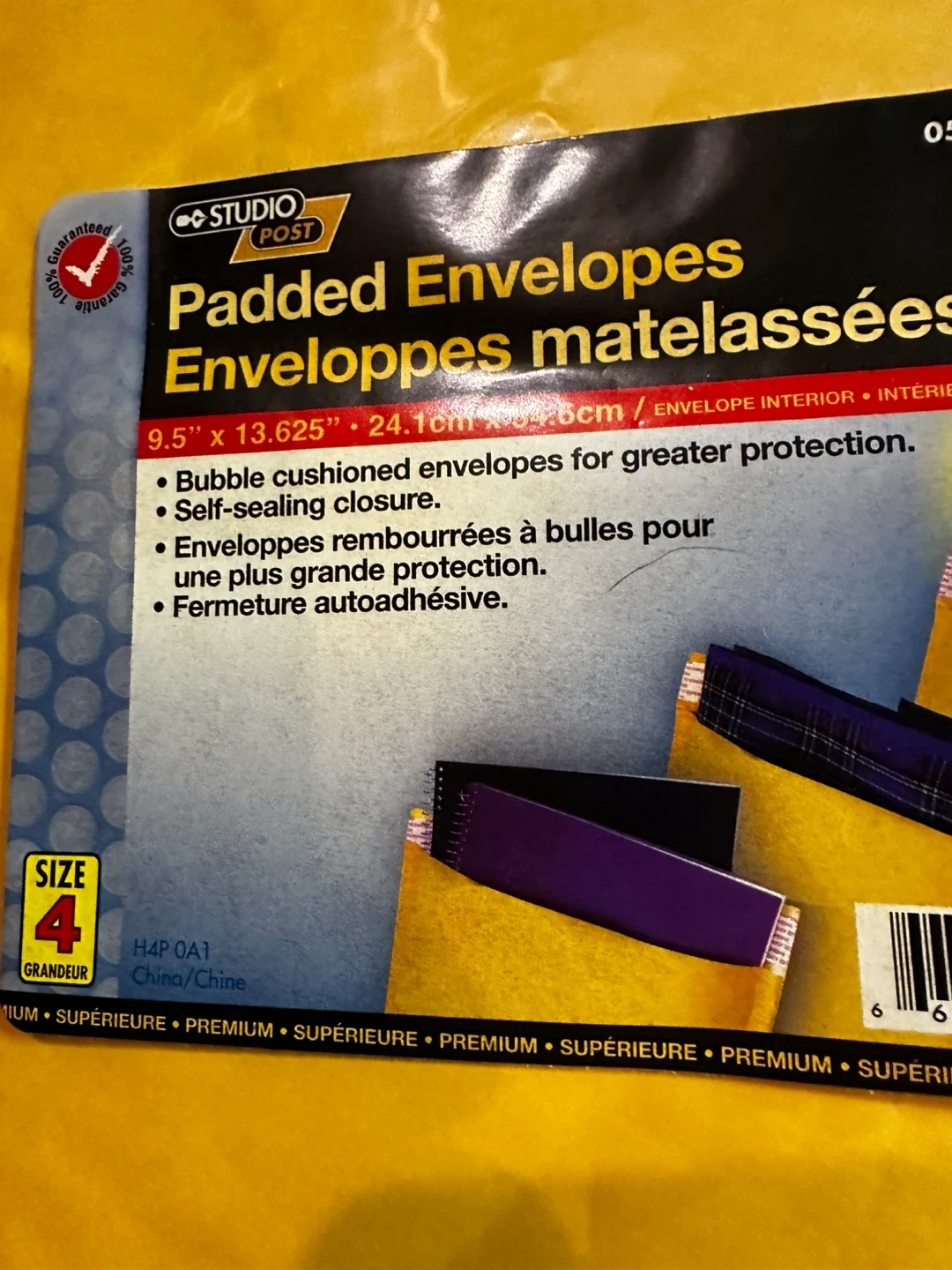I have a set of new Studio Post padded envelopes for sale! They are size 4 and measure 9.5" x 13.625". These envelopes have a bubble-cushioned interior for greater protection and feature a self-sealing closure. 16 new envelopes $1.00 each
