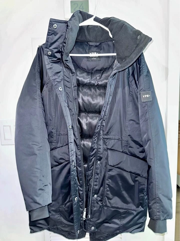 YPB (Your Personal Best) winter parka in black. Size Small. Worn only 2–3 times. Includes a removable hood and insulated inner layer. Sleeves have built-in thumb holes for hand coverage in cold weather. Very good condition with no damage. Pickup in Harbourfront, downtown Toronto.