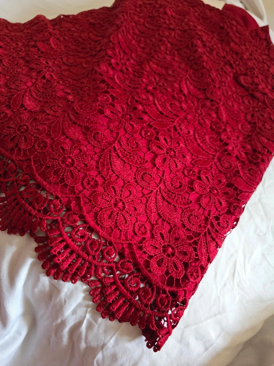 You'll get a beautiful red lace sleeveless top from Uniqlo! It's a size medium and in great condition. Perfect for a night out or dressing up a casual outfit. The lace detailing is really pretty! From Japan Uniqlo. Phoro taken with natural light from my window.