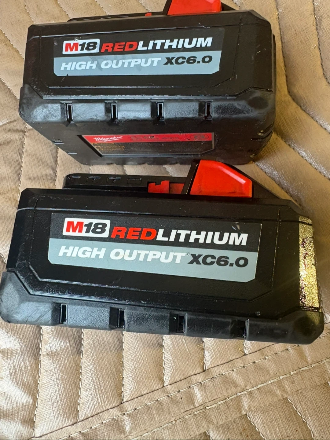Selling two Milwaukee M18 REDLITHIUM HIGH OUTPUT XC6.0 batteries. They are 18V and 6.0 Ah batteries.