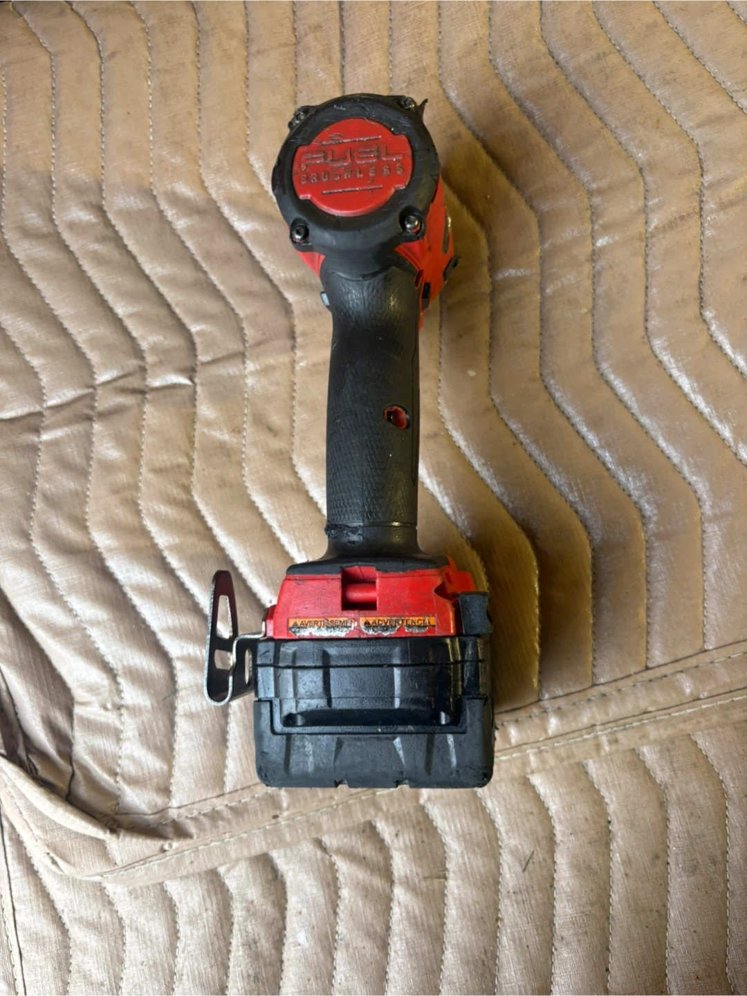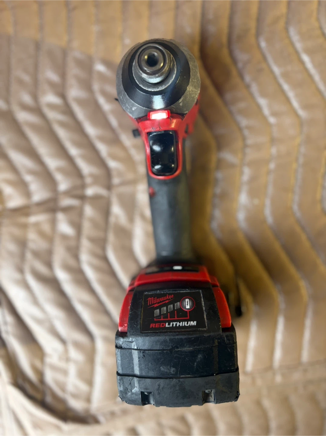 Selling a used Milwaukee M18 FUEL impact driver. It's red and black, and in good working condition! It uses a M18 REDLITHIUM XC5.0 battery.