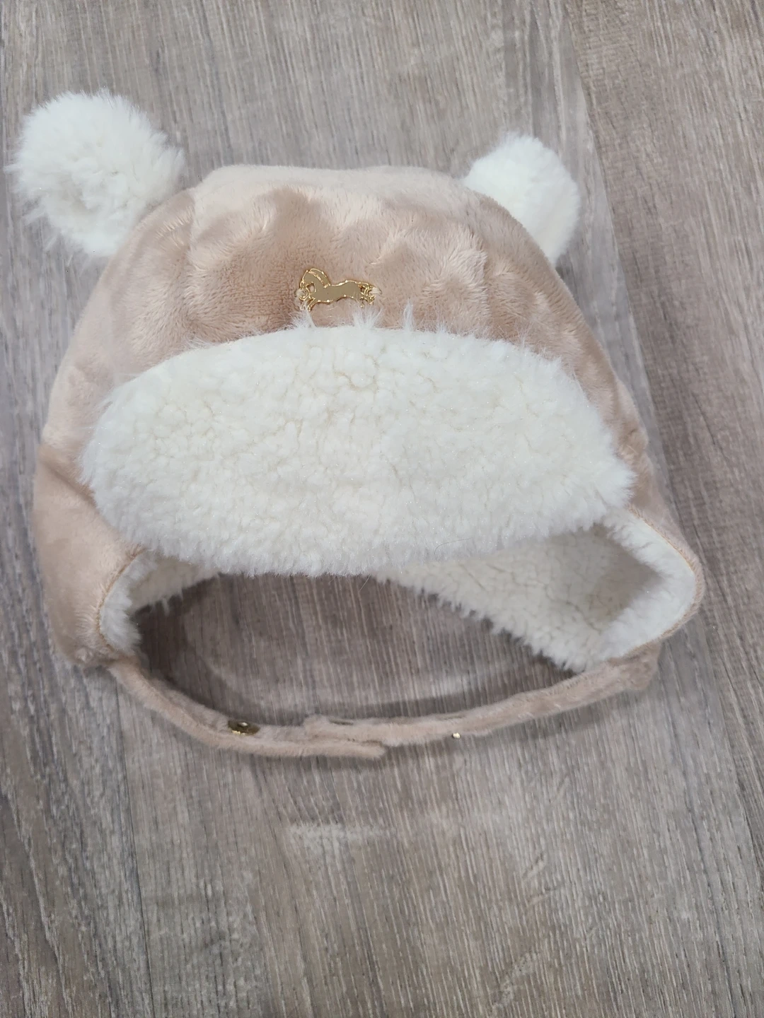 Super cute and cozy bear cub hat! The outside is a soft beige, and the inside is lined with white sherpa-like material to keep your little one warm. It has adorable little bear ears on top. For 6-9 months old