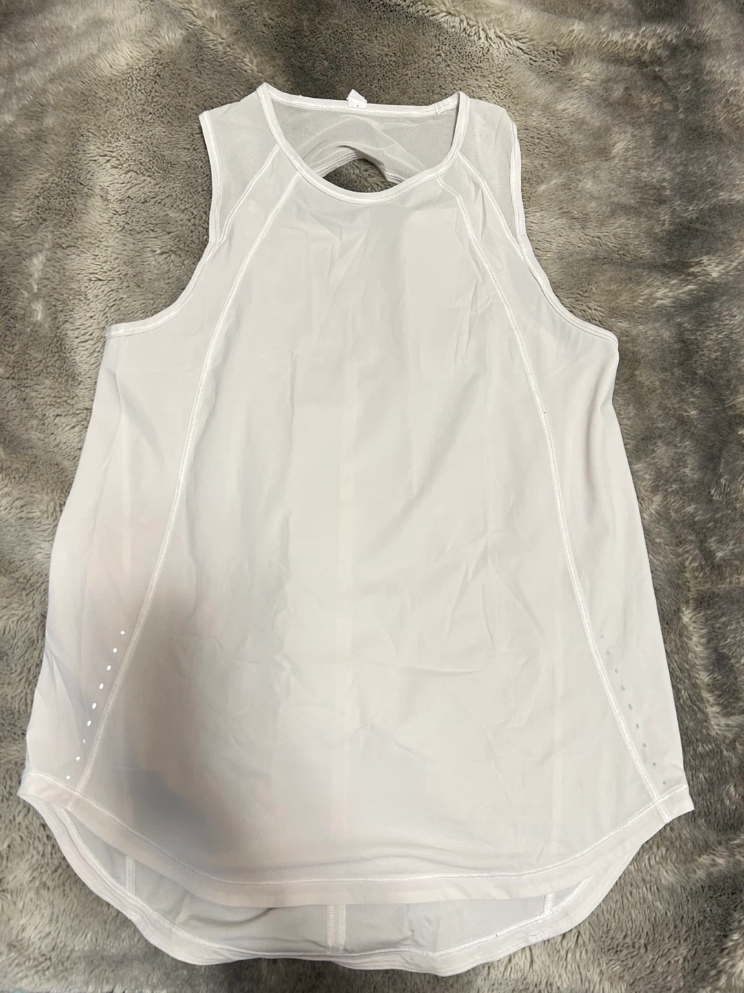 Selling a Lululemon white tank top. It's in great condition and perfect for workouts or casual wear! The breathable fabric and stylish design make it a versatile addition to your wardrobe