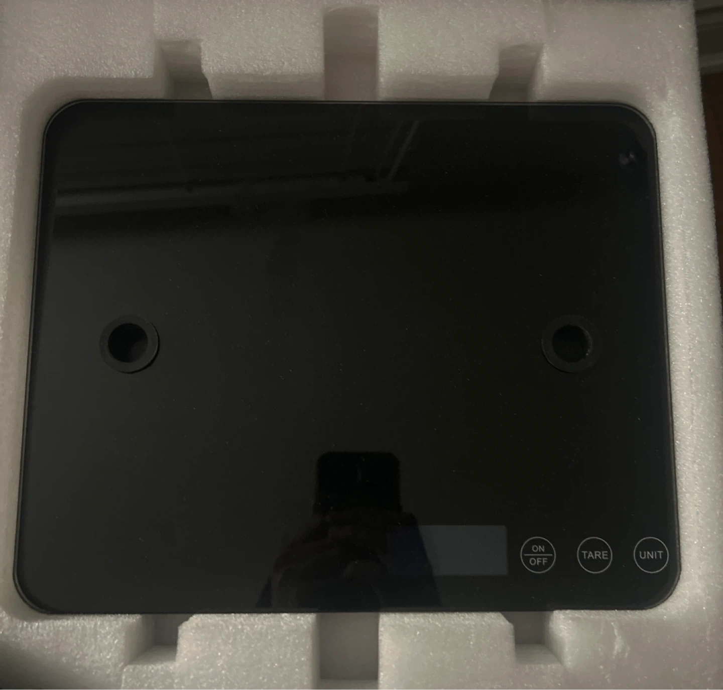 Selling a digital kitchen scale. It's in great condition and ready to help with all your cooking and baking needs! It features an on/off button, a tare function, and a unit button for easy use