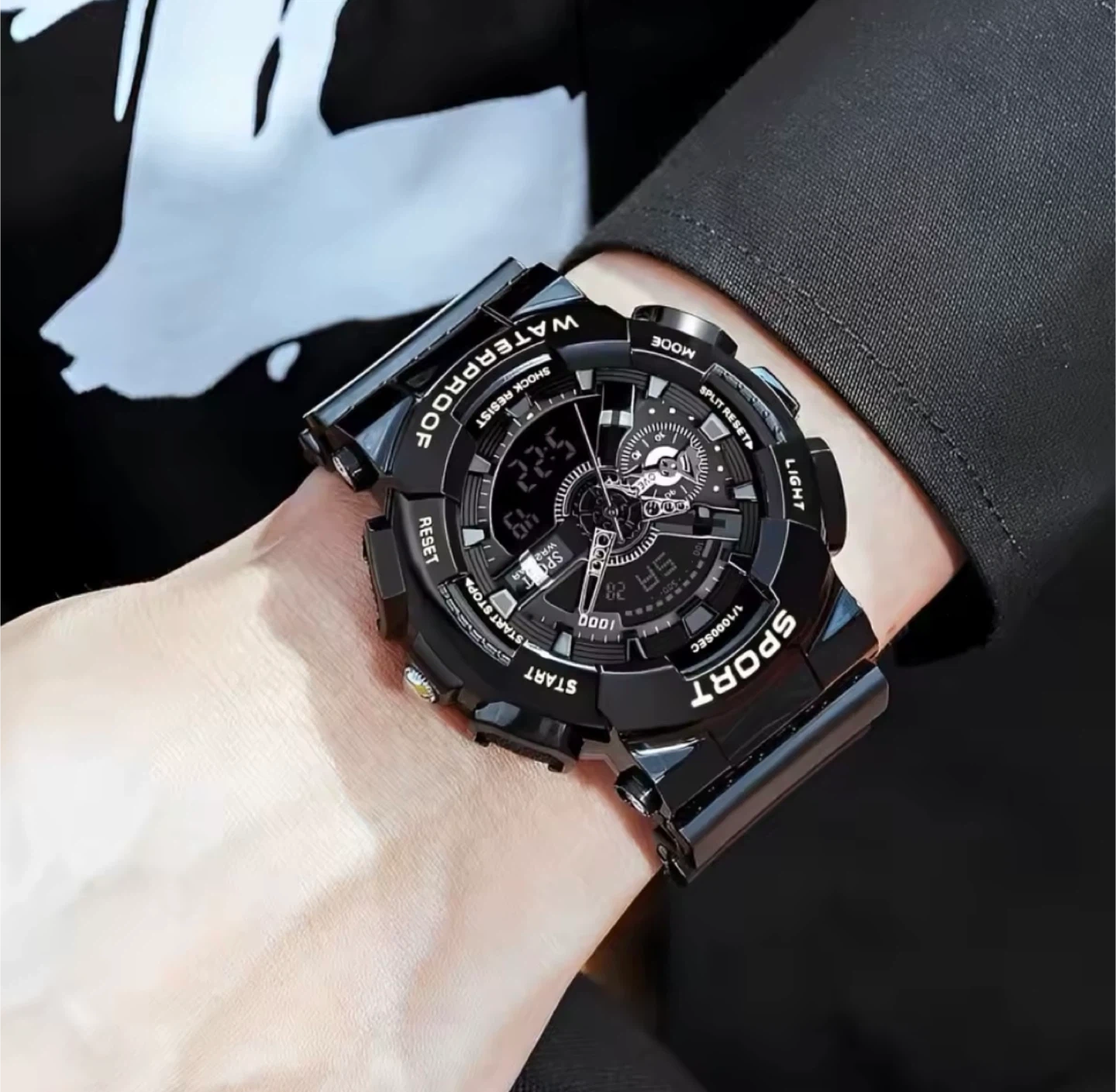 Selling a stylish black sport watch! The watch features a water-resistant design and a digital display. It has a sporty look and is in great condition. Perfect for everyday wear!