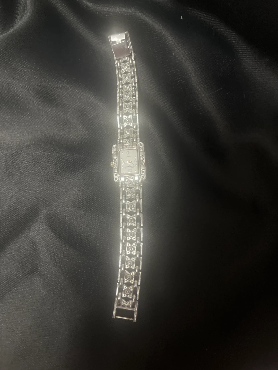 Selling a lovely Antiquities women's watch in silver. It features a delicate, detailed band and a square face. The watch is in good condition and would make a beautiful addition to any outfit