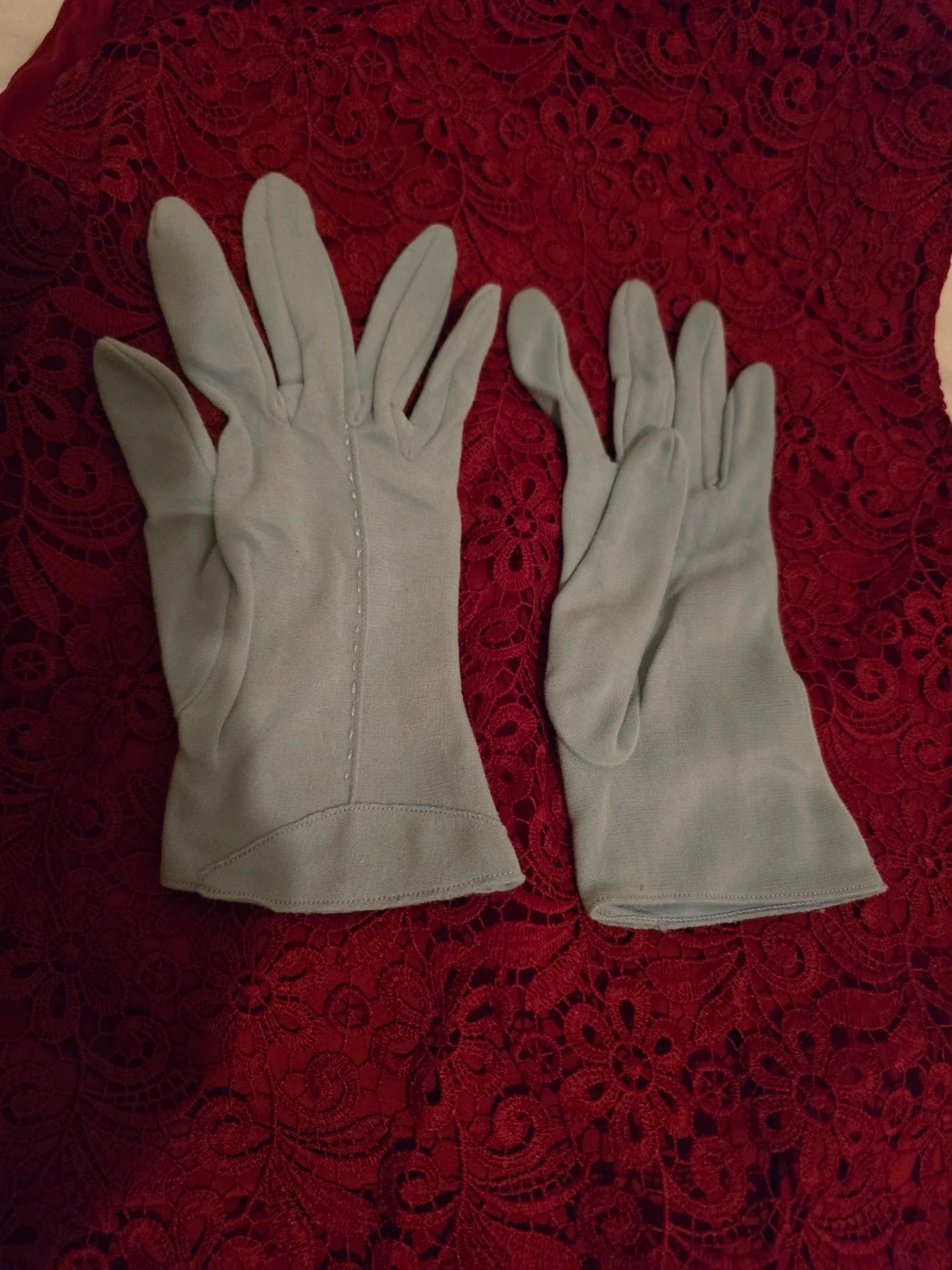 A pair of vintage dove blue gloves .Size7.5 manufactured by George Morgan Gloves Ltd. These gloves are often described in listings as: