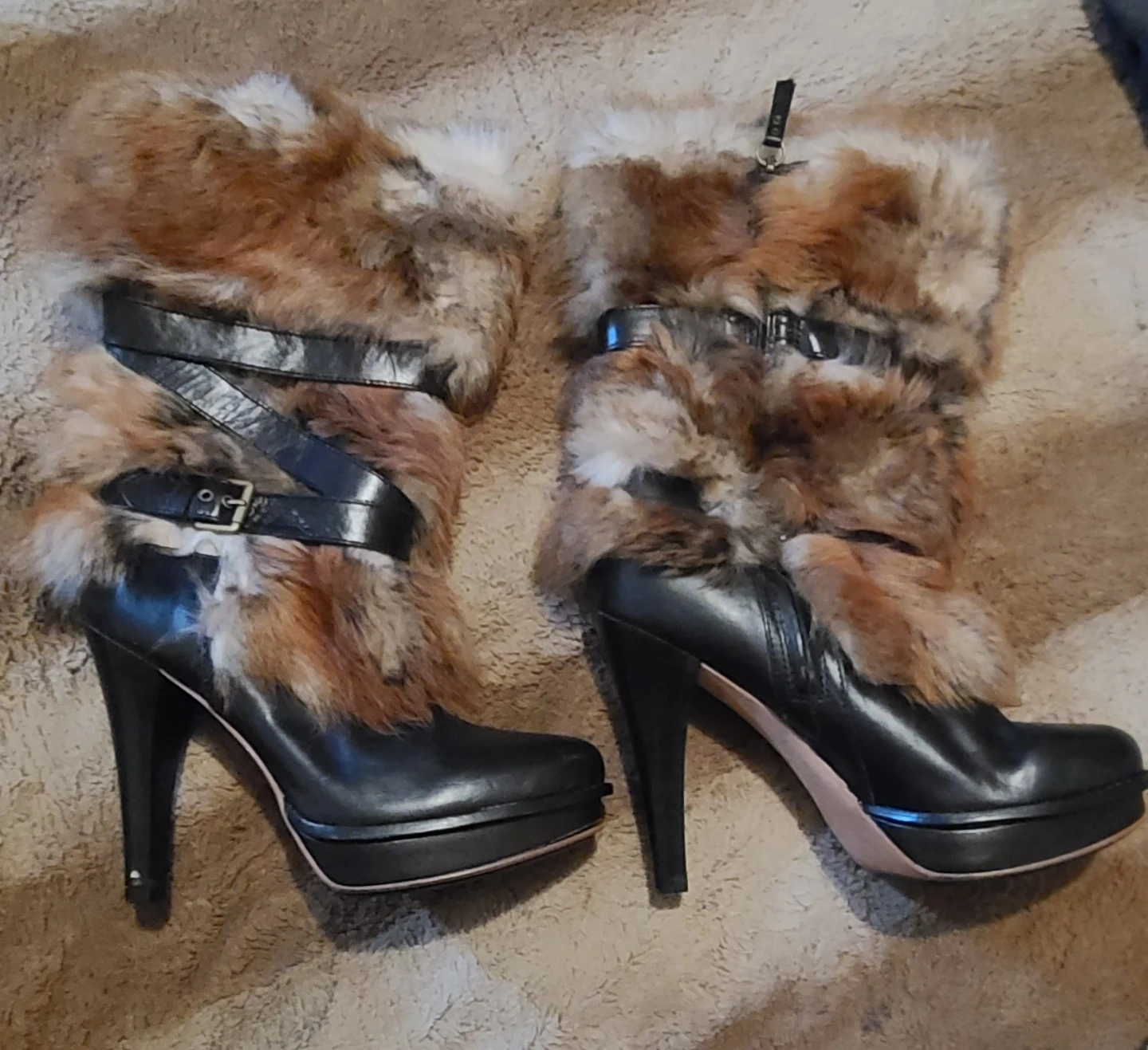 UGG Black Leather & Fur Heeled Boots #Cleanout