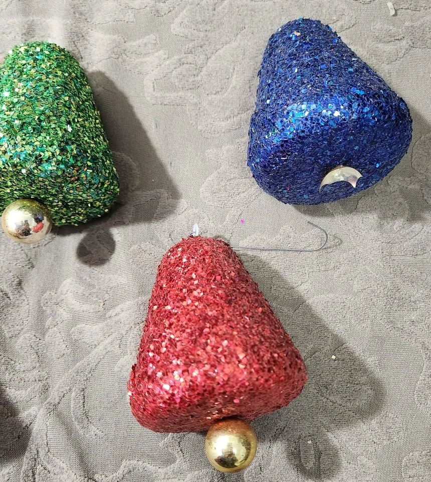 Add a touch of retro sparkle to your holiday decor with this set of 5 vintage glittered Christmas bell ornaments, dating from the 1960s–1970s.