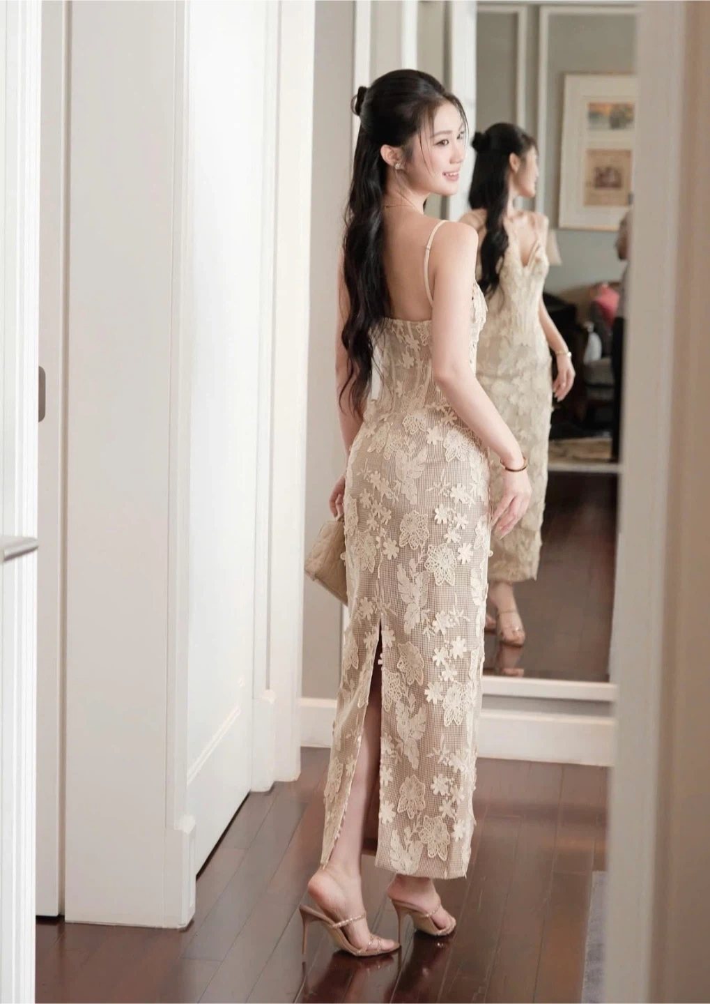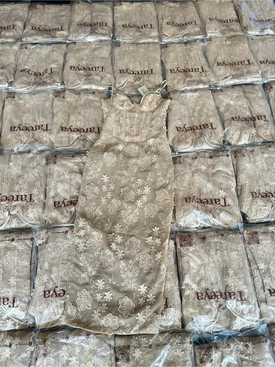 Selling a Tareeya floral lace corset dress. It features a beautiful floral lace pattern and a corset-style bodice. Perfect for a special occasion
