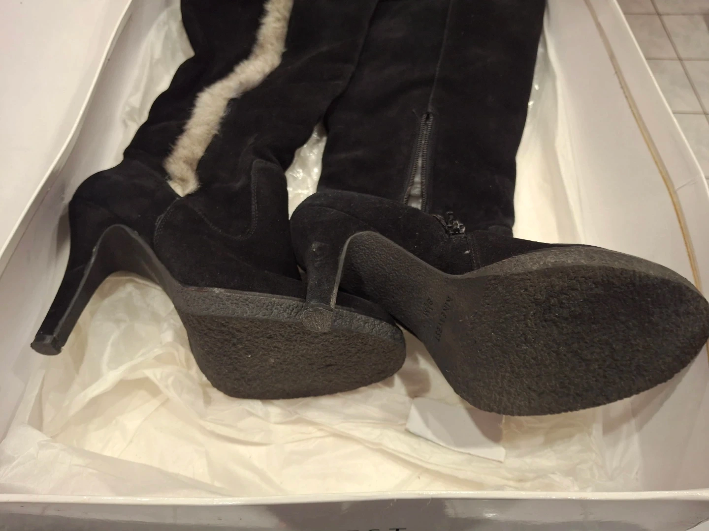 Selling a pair of Nine West NWTAYLAH boots in black and grey. They are a size 8.5M. These boots come with their original box. Worn only a couple of times.
