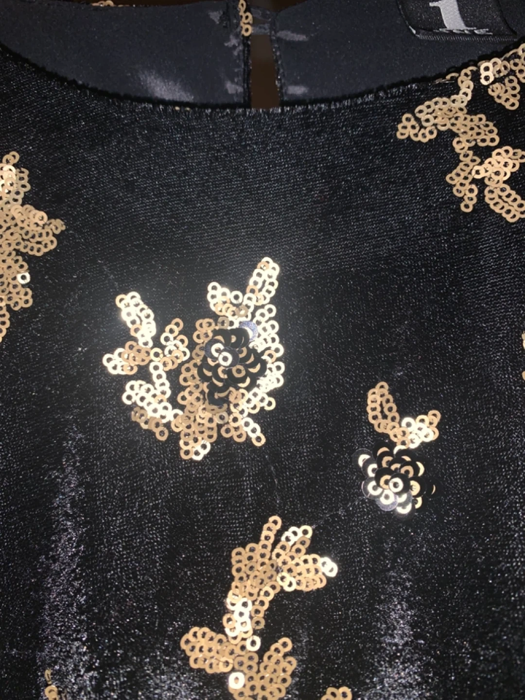 Perfect for the holiday parties! Here's a cute black tunic with gold sequins! The tunic has been never worn, size small.