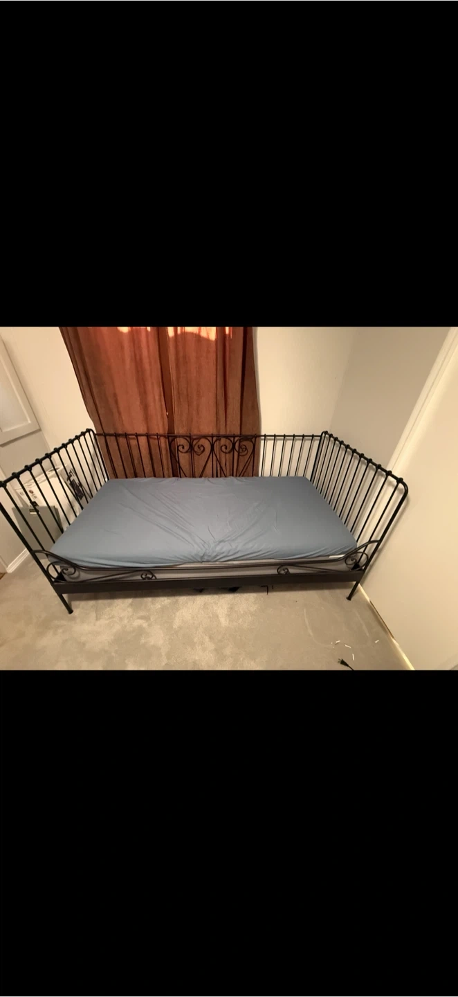 Selling an Ikea Hemnes daybed frame in black/brown! This versatile piece can be used as a sofa or a bed, making it perfect for a guest room or small space. It's in great condition and ready for a new home. Message me if you're interested!
