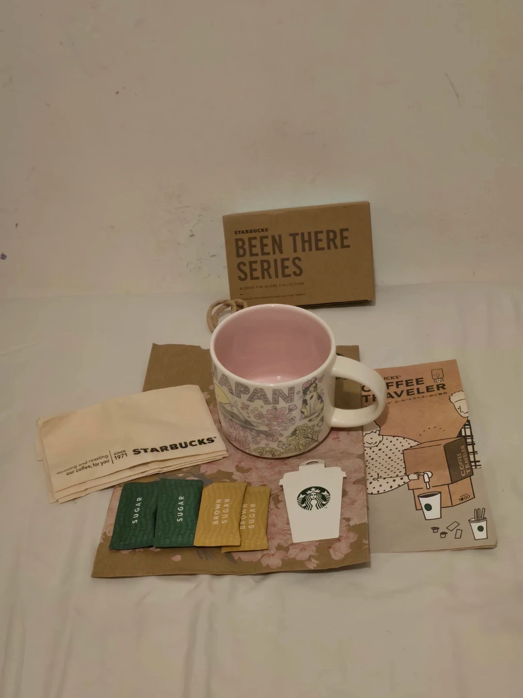 Comes with add ons Starbucks serviettes, sugar packets, gift tag and a gift bag.