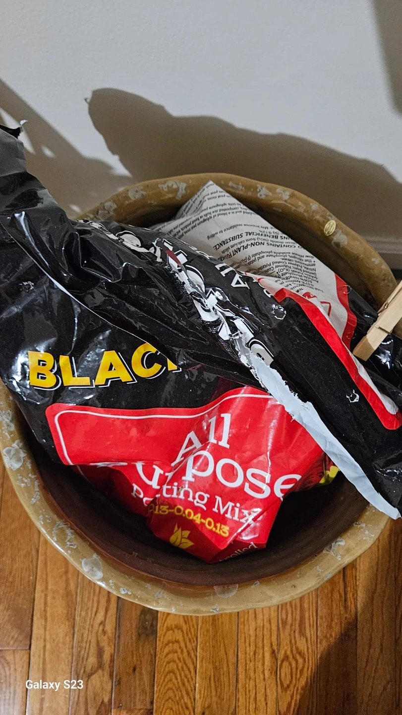 I'm selling a flowerpot with a free bag of Black Gold All Purpose Potting Mix. It's perfect for all your planting needs!