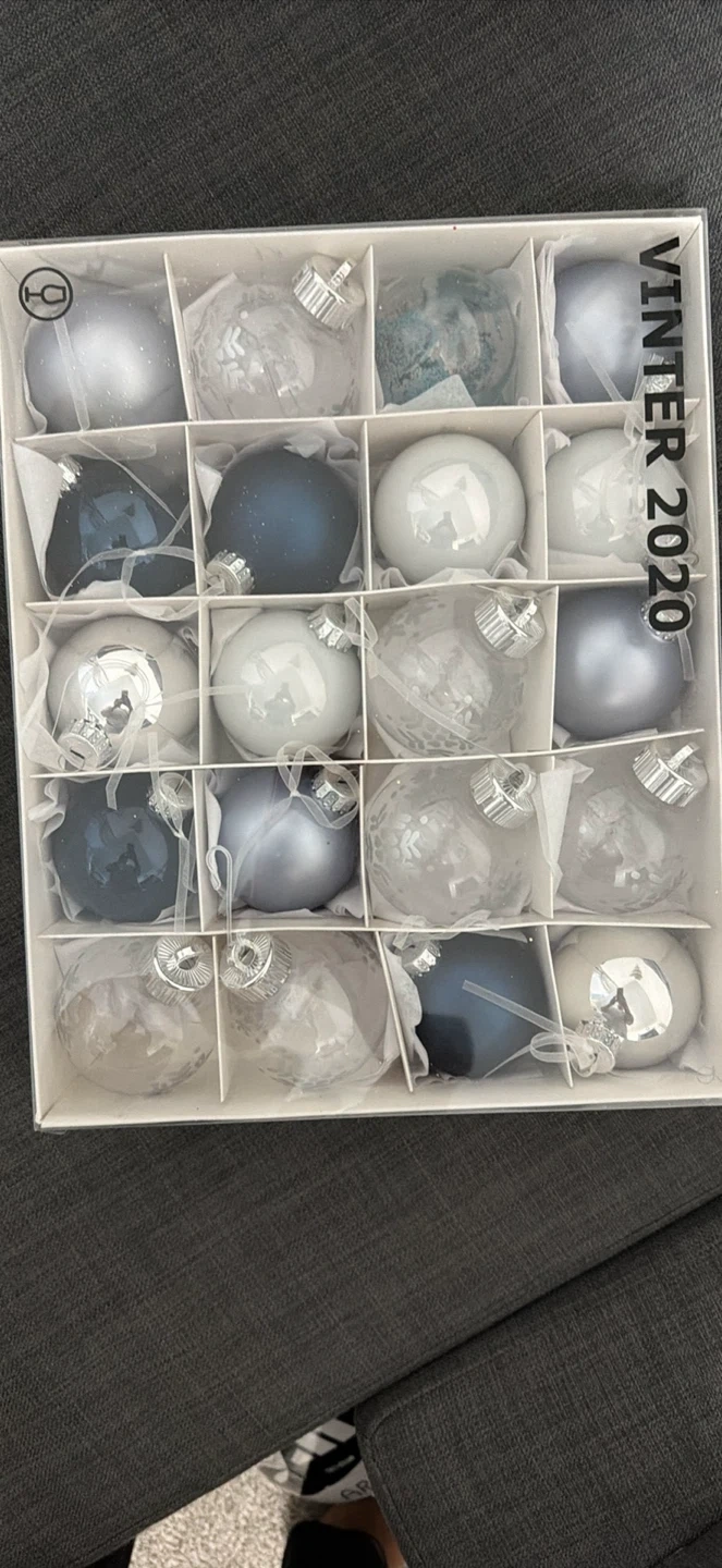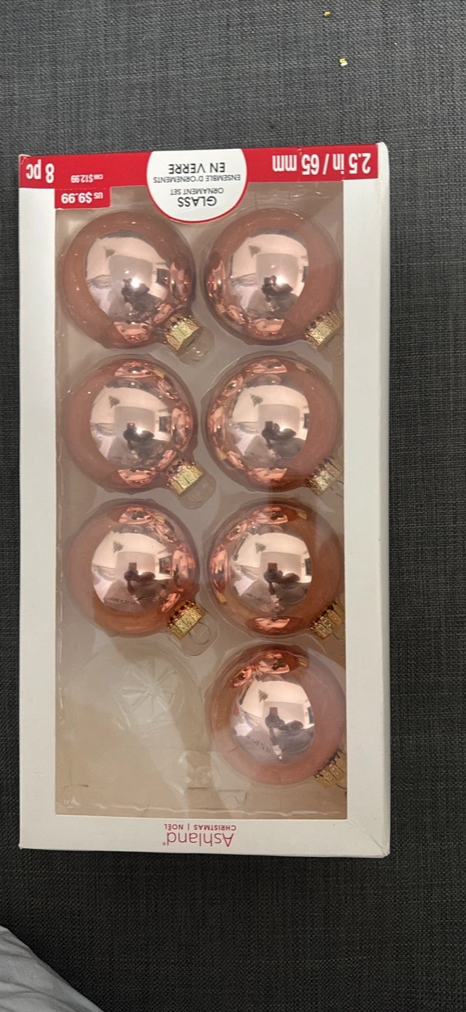- Ashland Christmas glass ornaments, 8 pc, 2.5 in / 65 mm $20