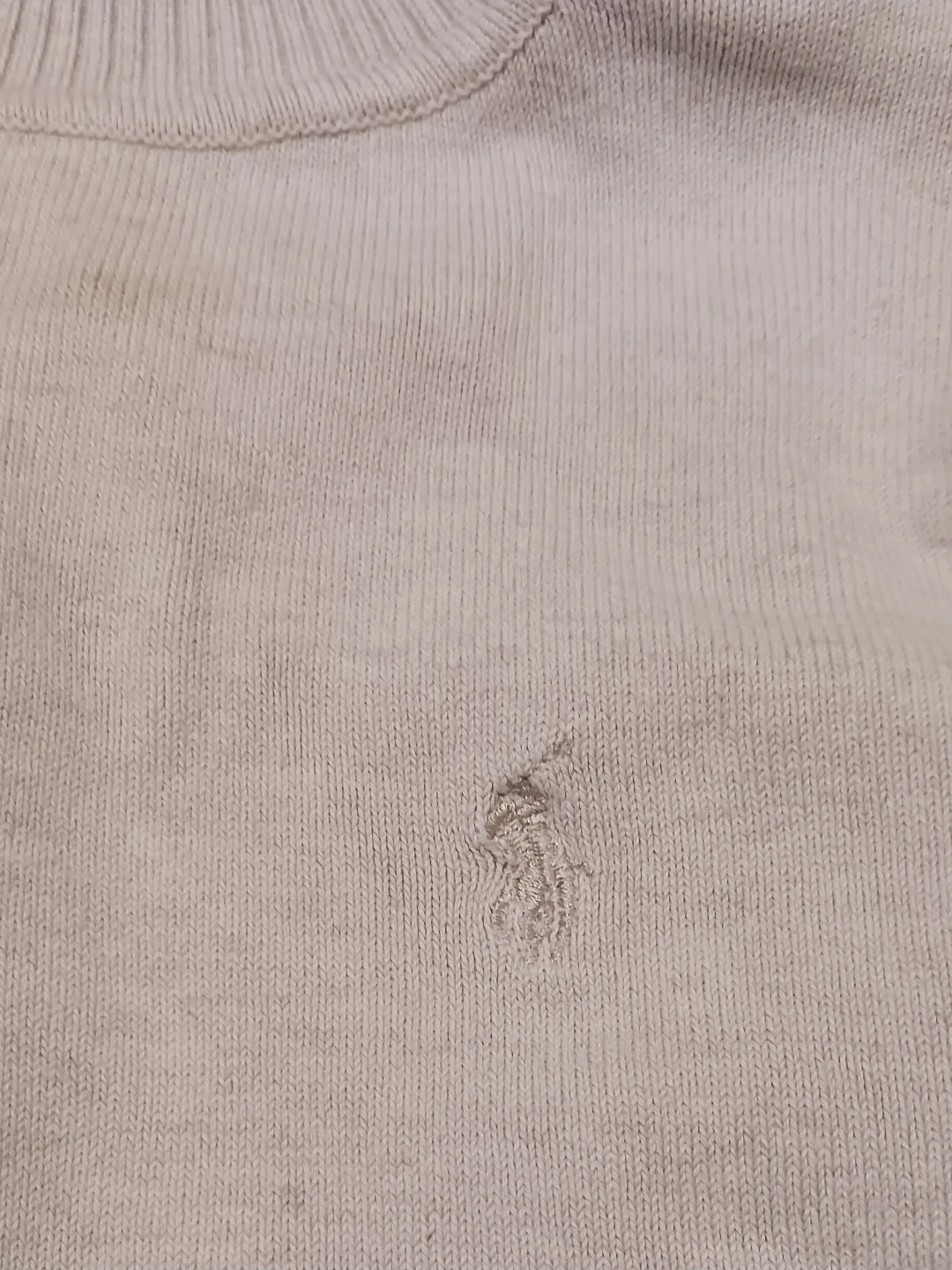 Selling a Ralph Lauren turtleneck sweater. It has some stains on the front and sleeves. Please see photos for details