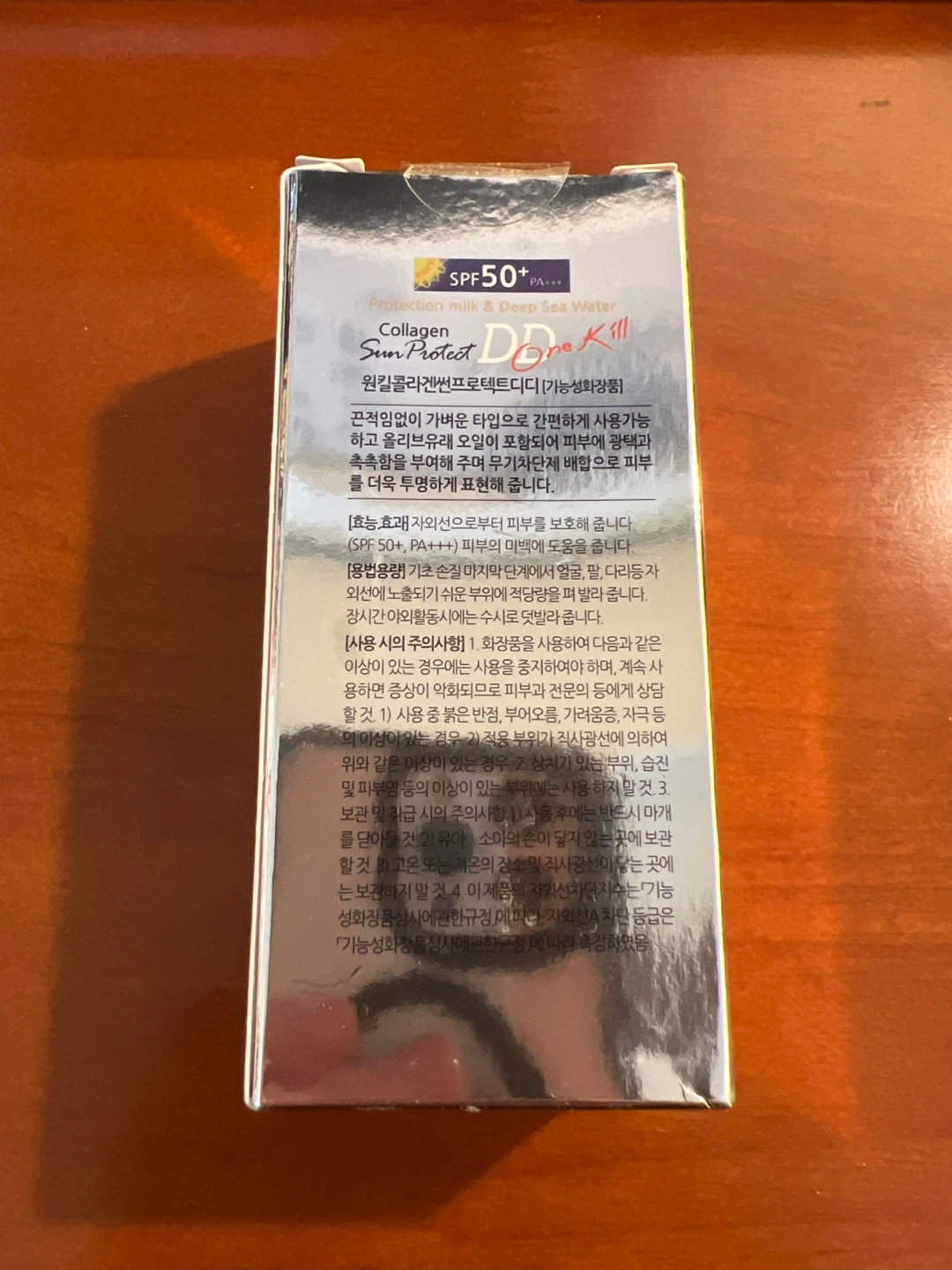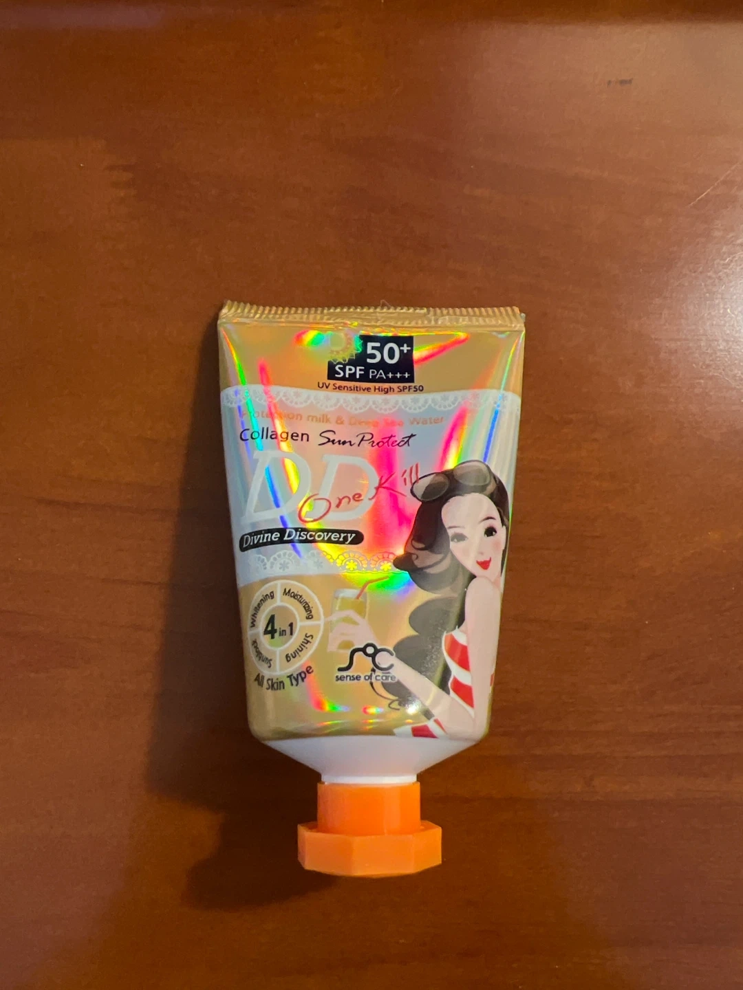 Selling a Collagen Sun Protect DD One Kill sunscreen with SPF50+(30g). It is UV sensitive high SPF50. It is a 4 in 1 sunscreen: whitening, moisturizing, shining and sunblock. It is for all skin types.