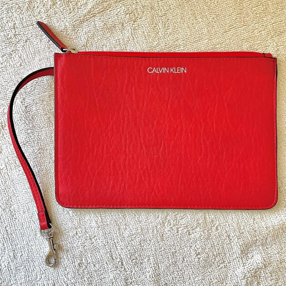 Calvin Klein wristlet clutch in a bold, beautiful red color.