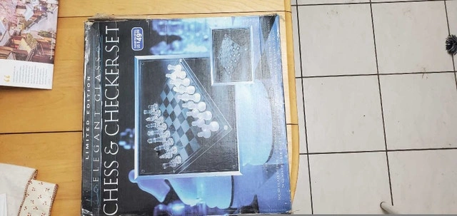 Elegant Glass Limited edition Chess and Checker set. 2 in 1 game. Excellent condition. Comes with all set pieces. Great for home or cottage. $25. Call/text 416 5593166.